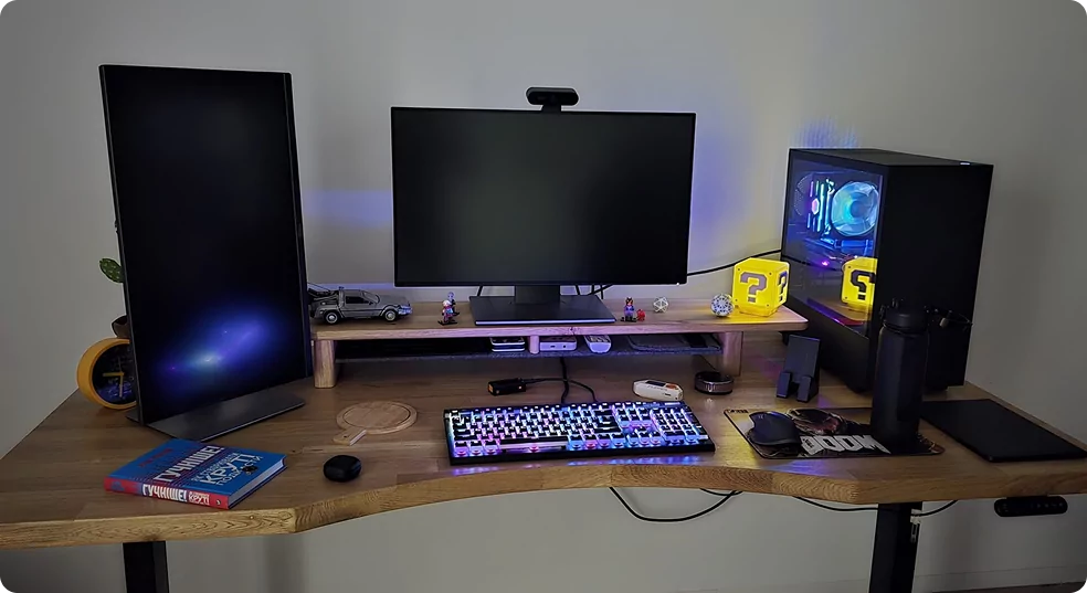 Для одного монітора достатньо 120×60 см, для двох моніторів — 140×70 см, для складного сетапу програміста — 160×80 см.