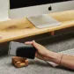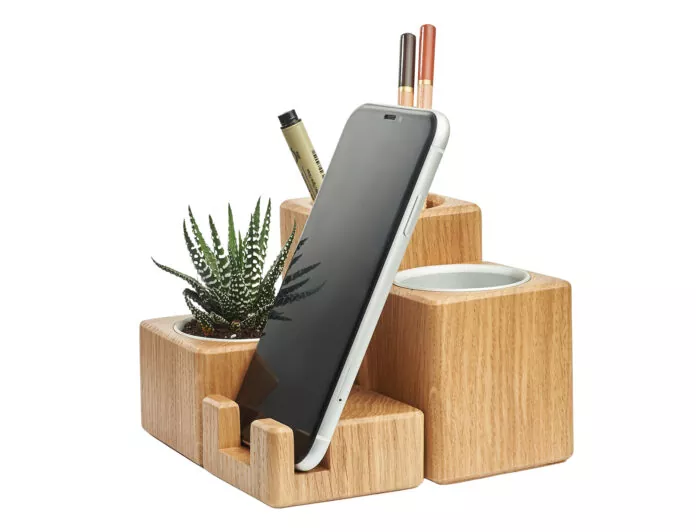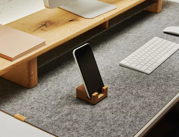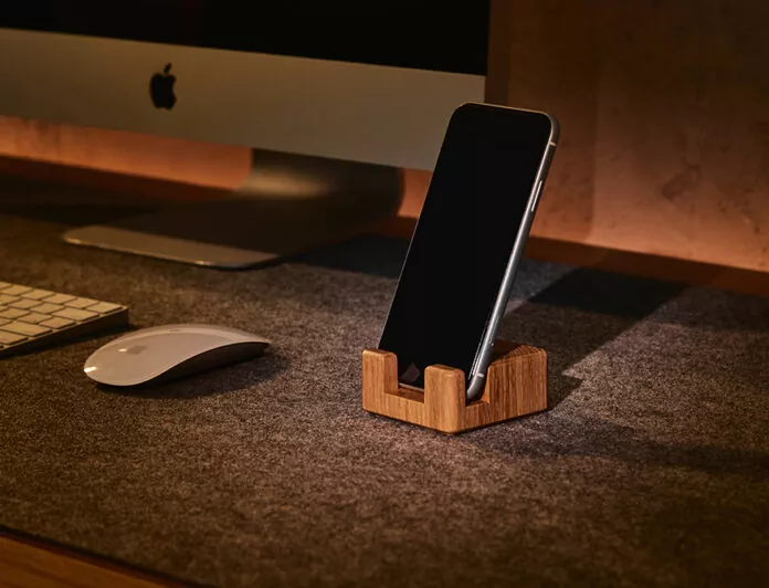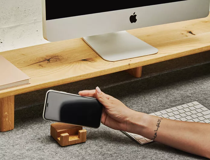 Using this stand lets you keep your hands free while working. Made of natural solid oak, thanks to its minimalist design, the accessory will perfectly fit into your workspace The bottom of the stand is cork, which maintains stability, and does not damage the desk surface when moving.