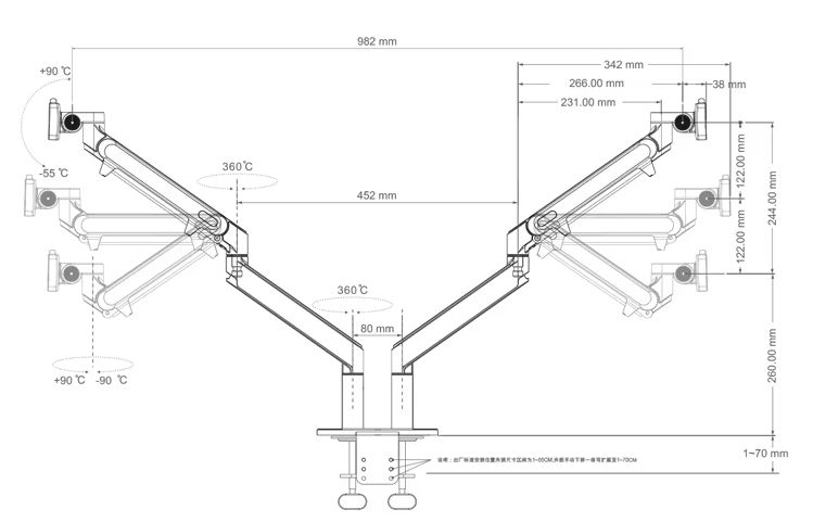 Регульована та універсальна конструкція. Ця Y-подібна підставка призначена для розміщення 32-дюймового монітора, що дає можливість легко регулювати її відповідно до особливостей вашого робочого простору. Поворот на 180 градусів забезпечує плавне обертання, що робить підставку ідеальною для тих, хто потребує гнучкого налаштування робочого простору.