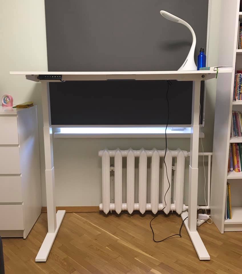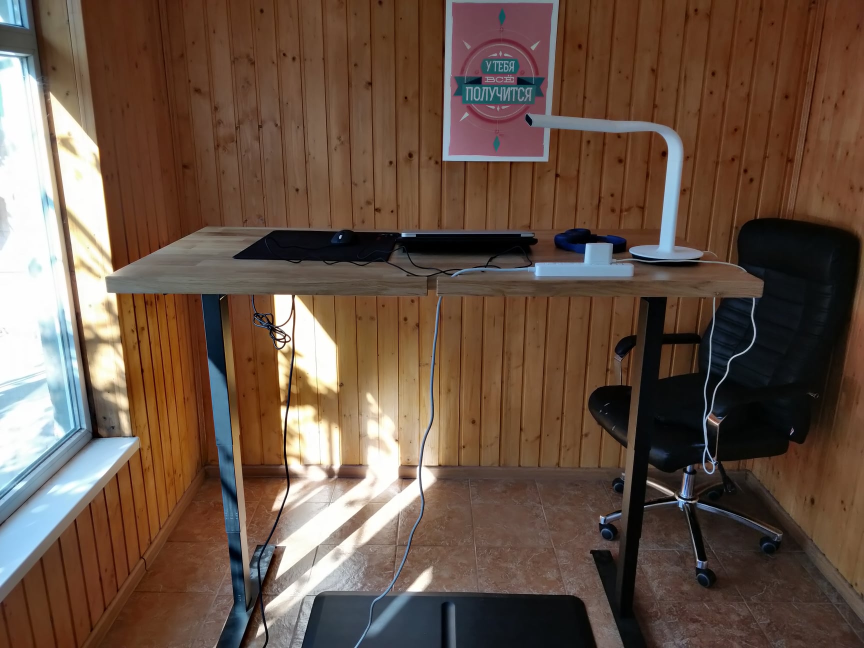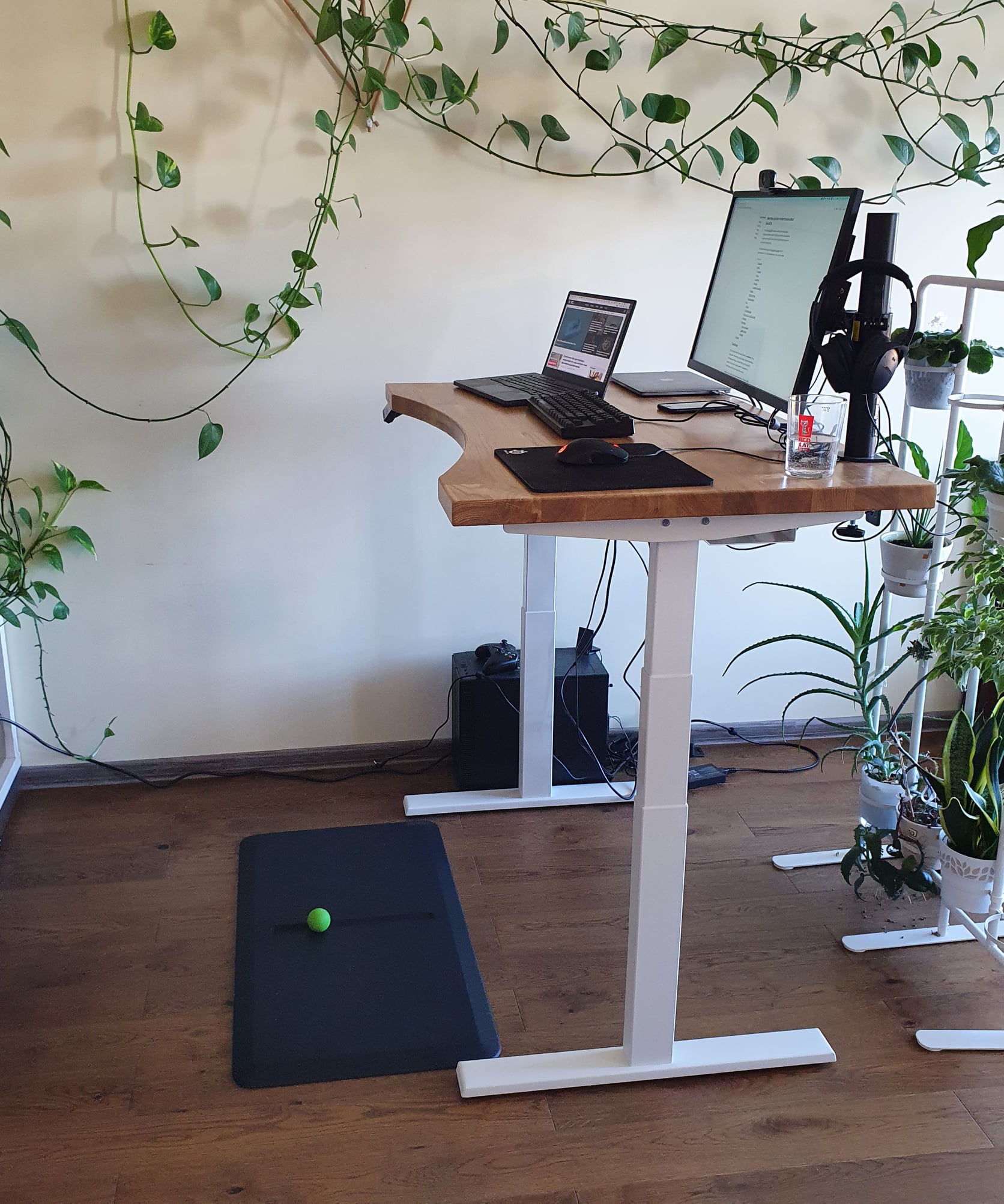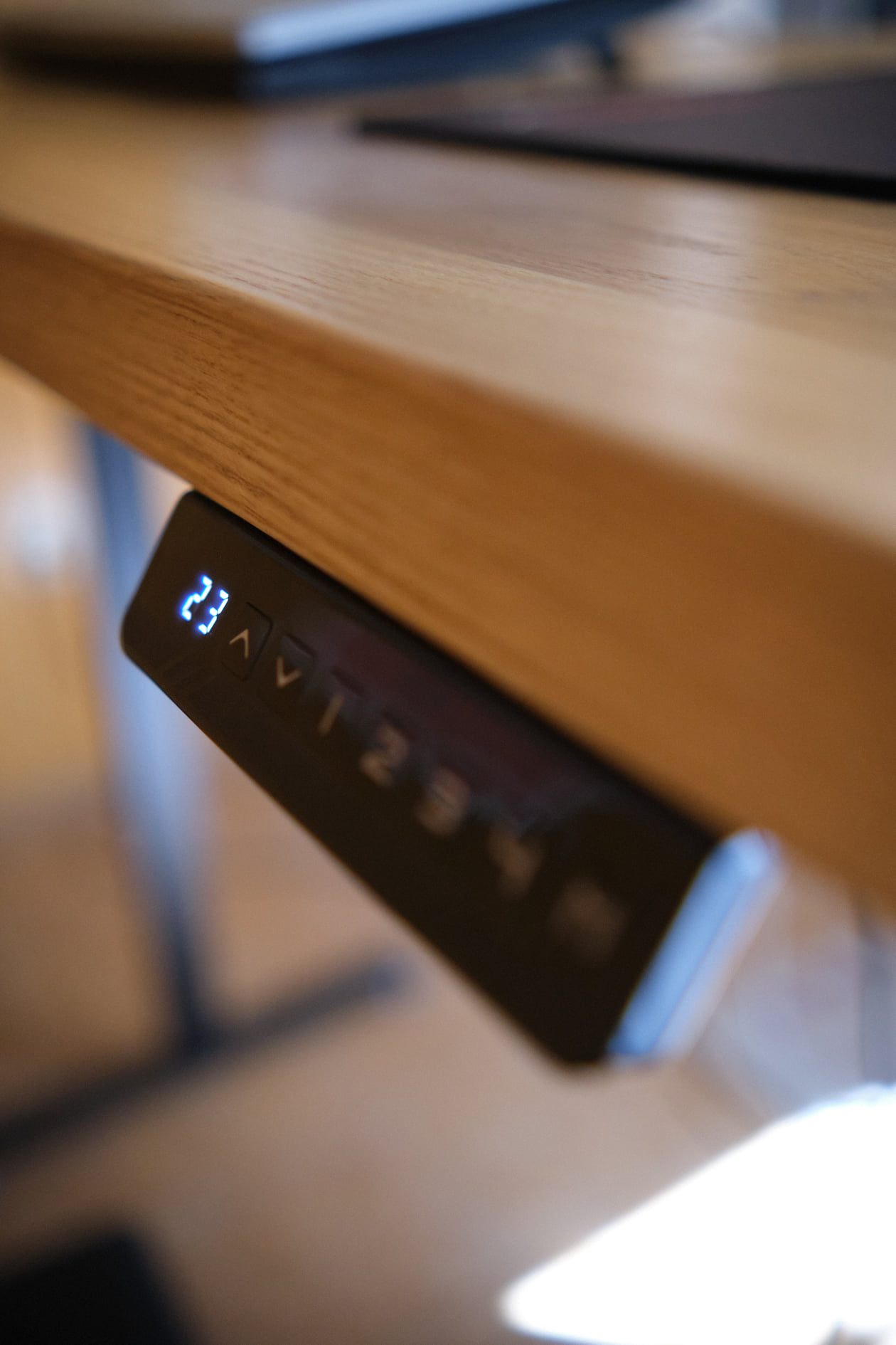 Відчуття від використання столу дуже круті – він масивний, надійний, не хитається. Коли стоїш, можна на нього спертись і не переживати, що він перевернеться. Пульт дозволяє запам’ятати 4 положення висоти і переключатись між ними, натиснувши одну кнопку. Тому переключаюсь я часто, як тільки виникає мінімальний дискомфорт від сидіння чи стояння. Сидіти за таким столом також зручніше, ніж за звичайним – завжди можна ідеально підлаштувати висоту під себе.