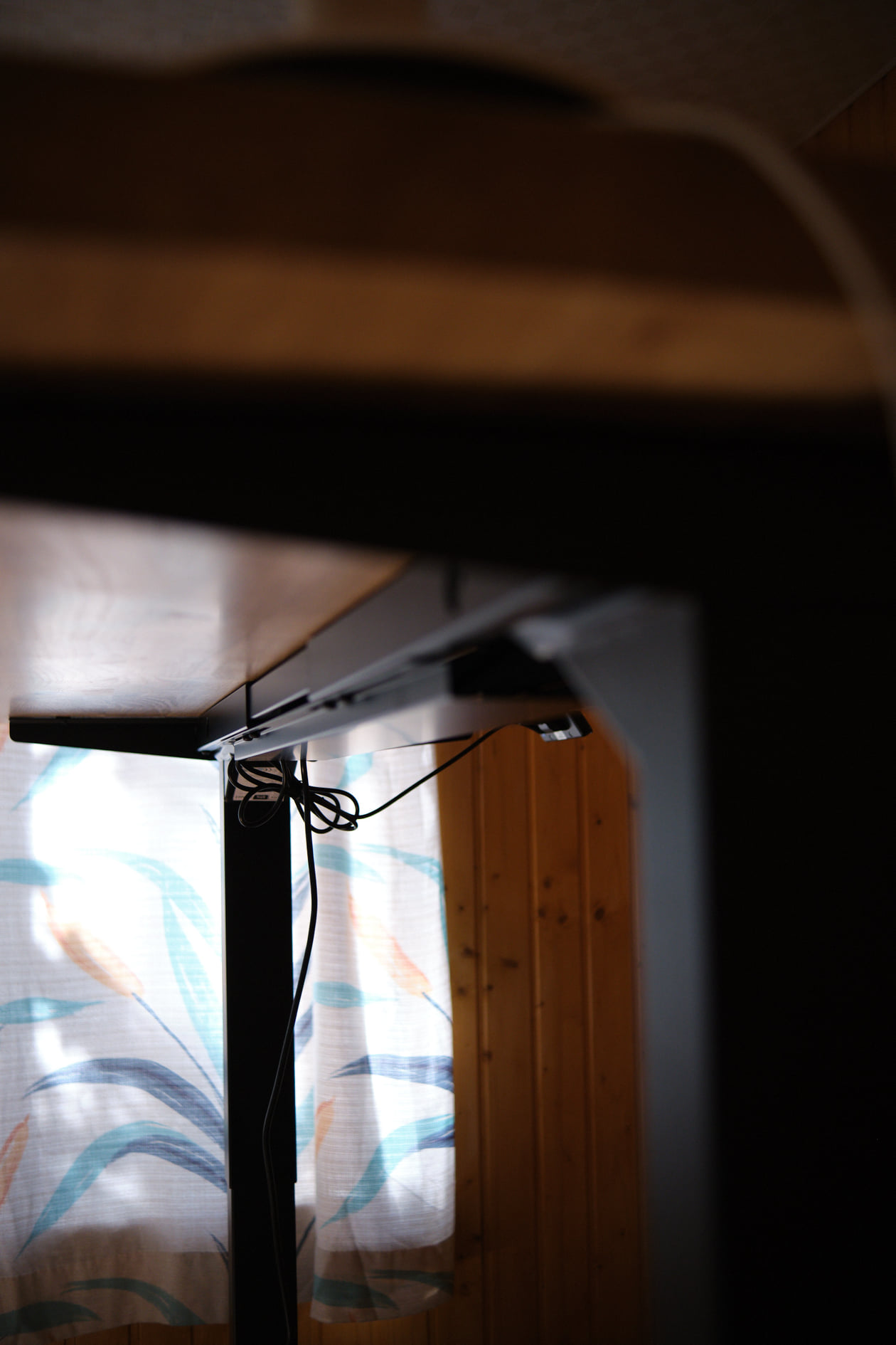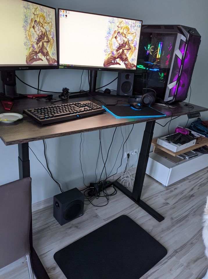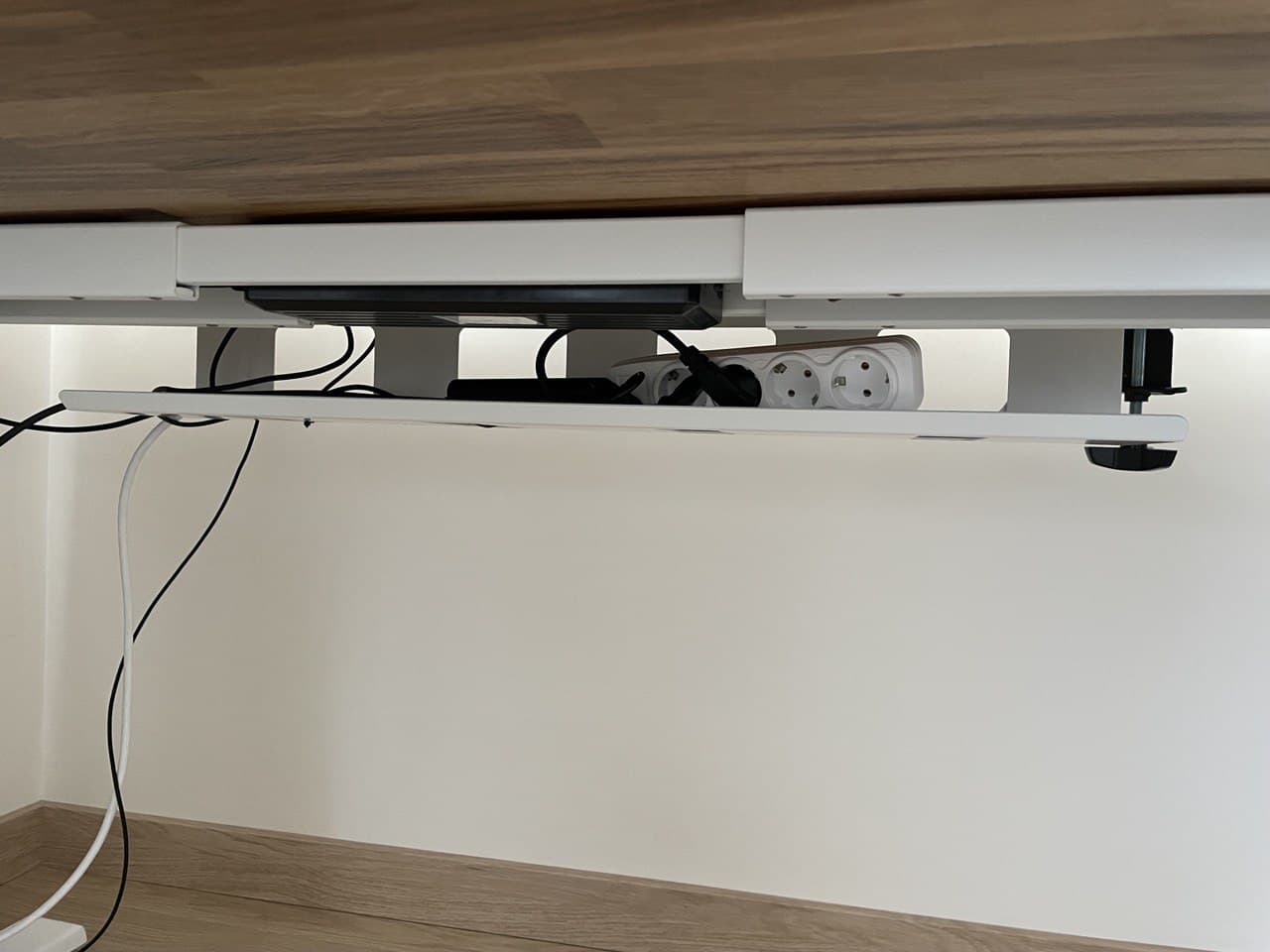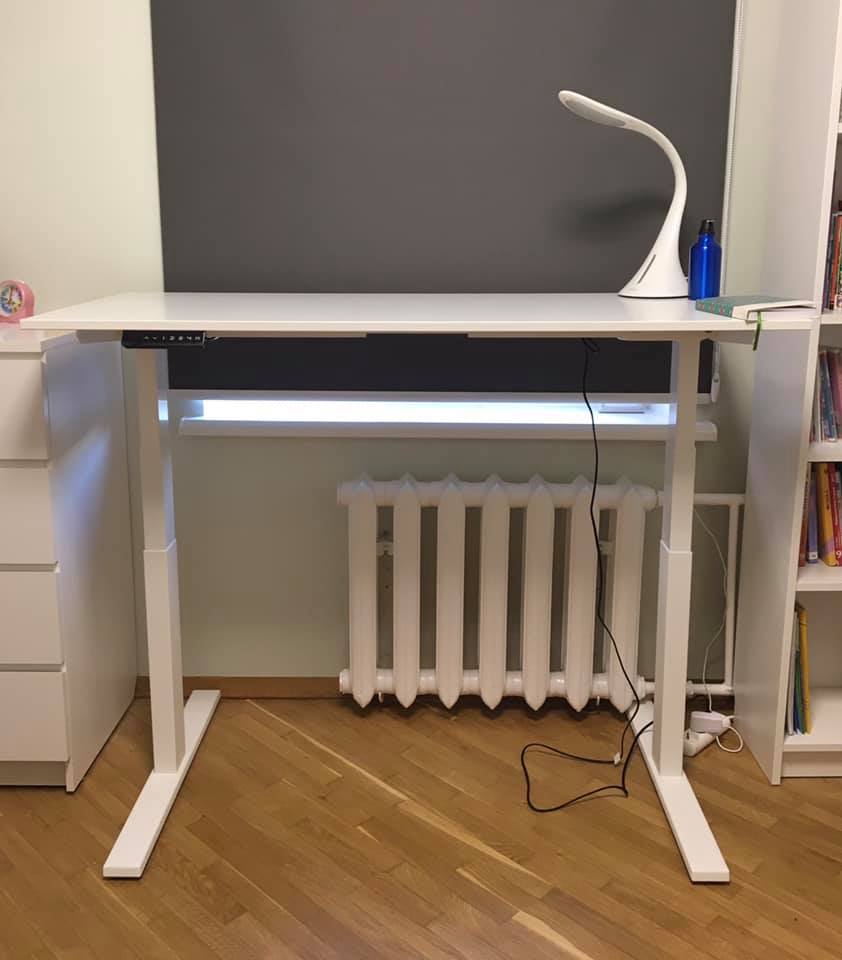 Відчуття від використання столу дуже круті – він масивний, надійний, не хитається. Коли стоїш, можна на нього спертись і не переживати, що він перевернеться. Пульт дозволяє запам’ятати 4 положення висоти і переключатись між ними, натиснувши одну кнопку. Тому переключаюсь я часто, як тільки виникає мінімальний дискомфорт від сидіння чи стояння. Сидіти за таким столом також зручніше, ніж за звичайним – завжди можна ідеально підлаштувати висоту під себе.