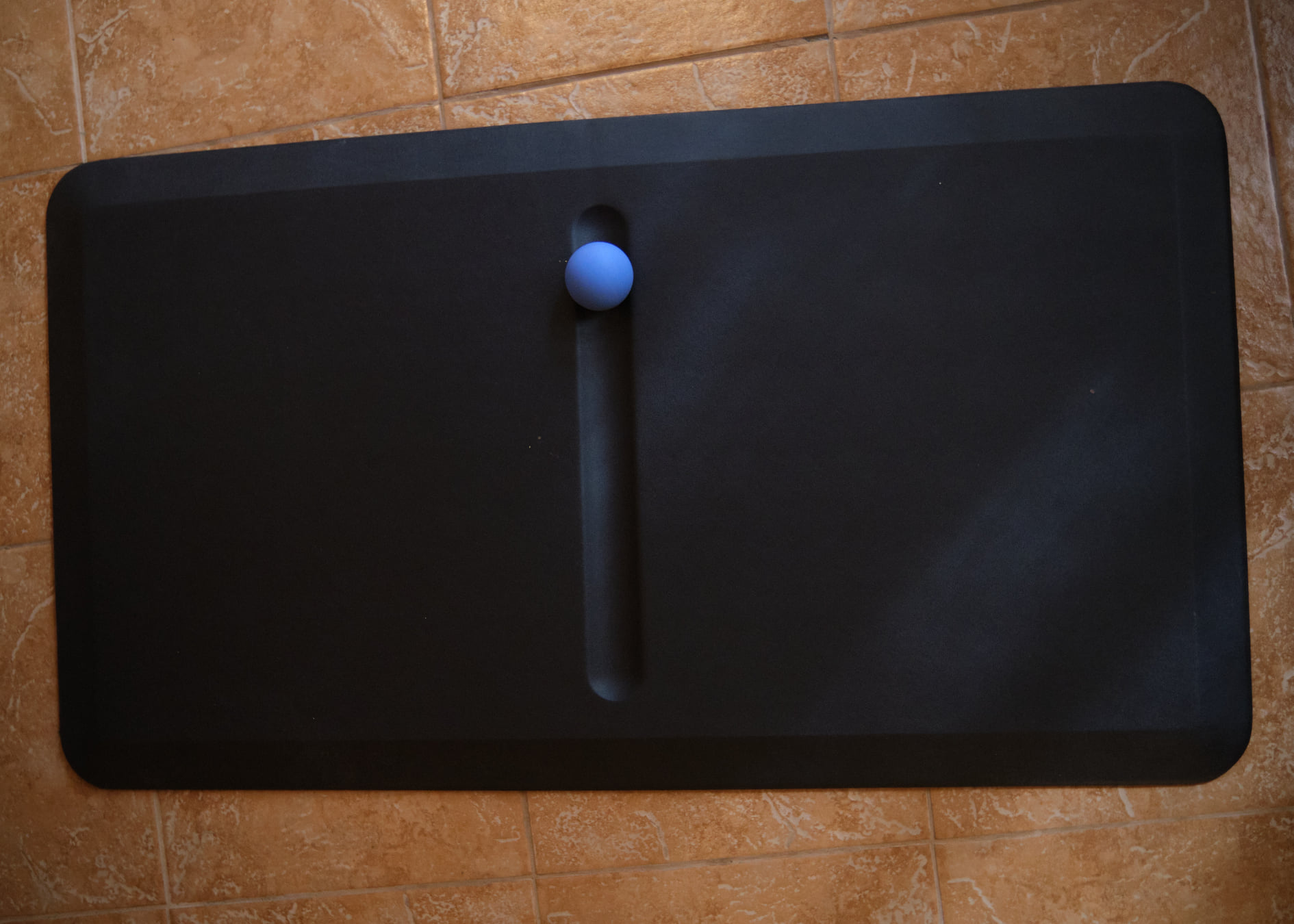 Оскільки ідеалу немає меж, то ще трохи згодом я придбав килимок для ніг з м’ячиком BallMat. Стояти на ньому одне задоволення: м’яко та тепло, м’ячик – для розваг та масажу стоп. Матеріал довговічний і за три роки ніяких слідів! Протер ганчіркою – і як новий.