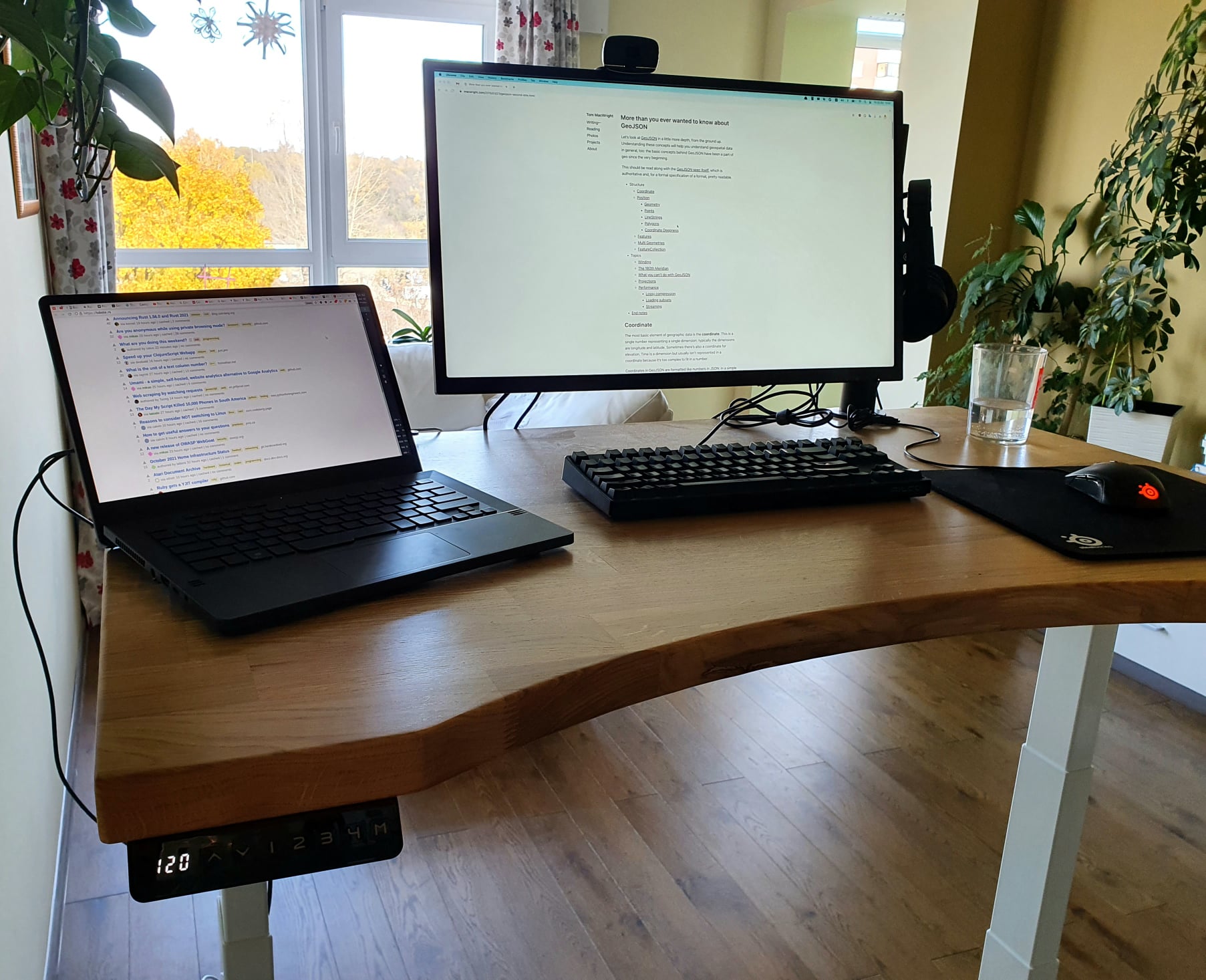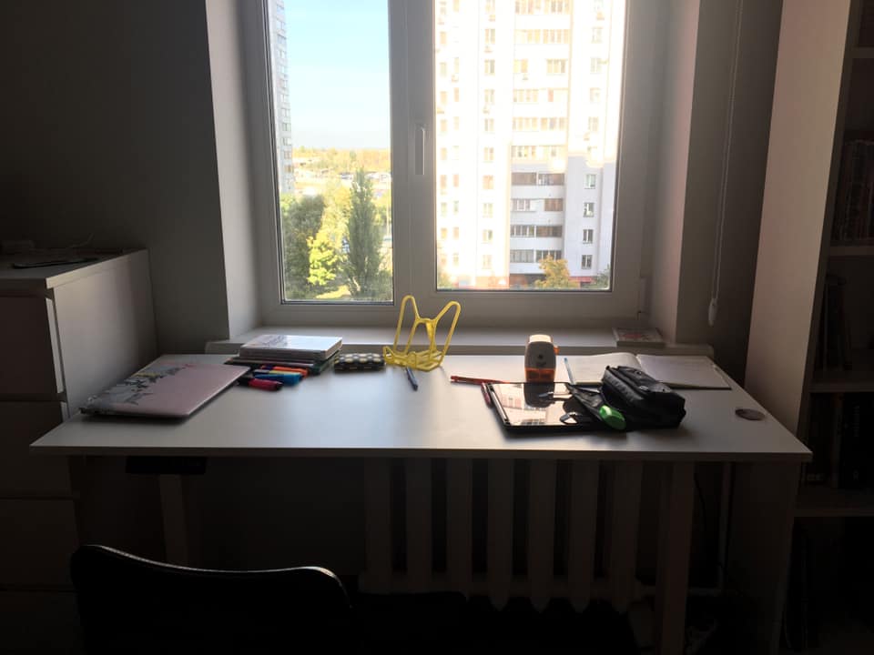 Трохи згодом придбав додому статичний стіл CONSTANT. Stiystil якісно виготовили його за моїми індивідуальними розмірами. Тепер за столом працюю не лише я, а й моя дружина. На ньому легко розмістились два робочі місця й дуже часто ми працюємо удвох одночасно.