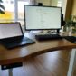Монітор тепер зручно розміщений на рівні очей та є купа простору під ним для всяких дрібничок, телефон теж в рівень з моніторами а не десь лежить на теж зручно