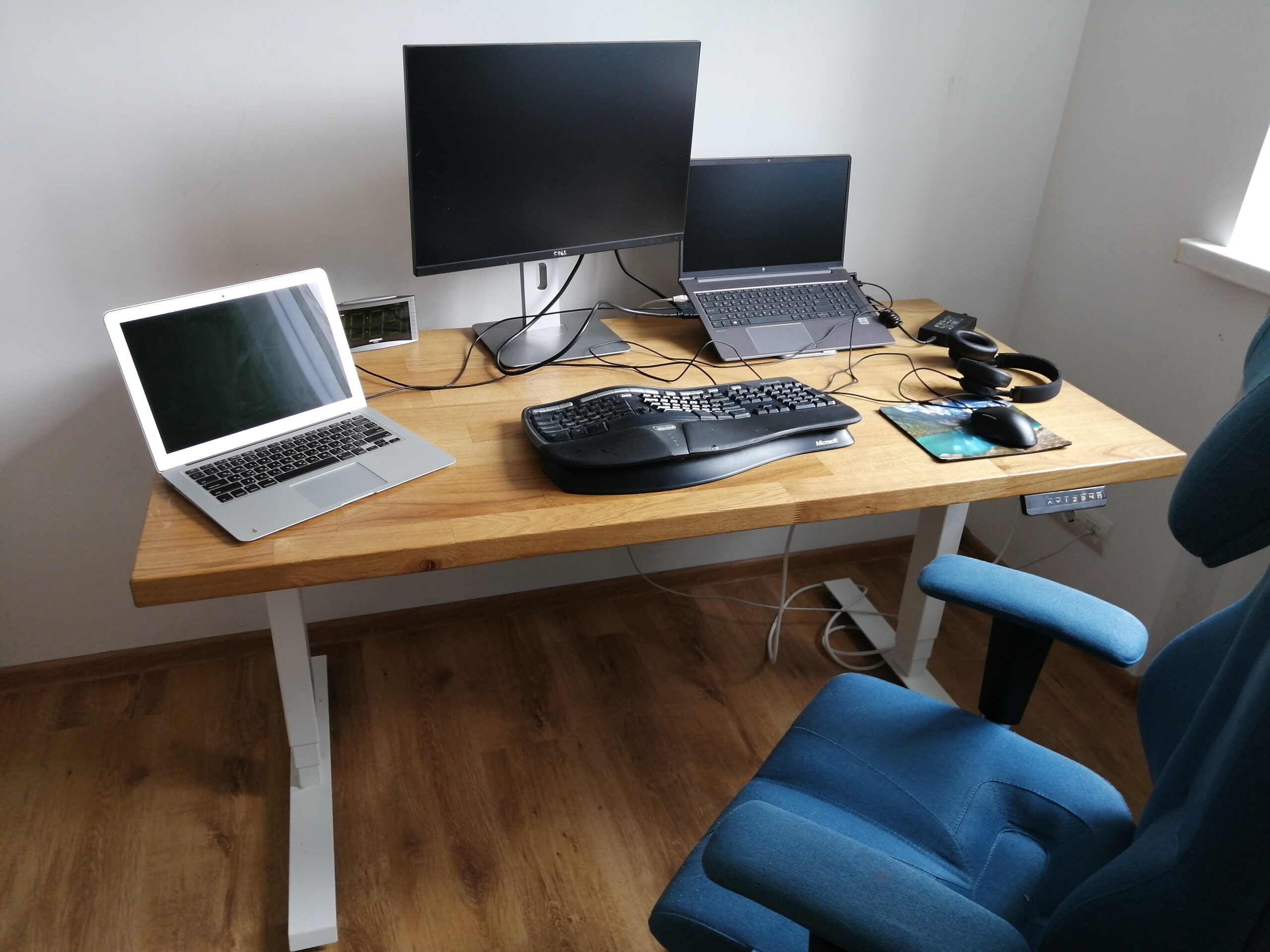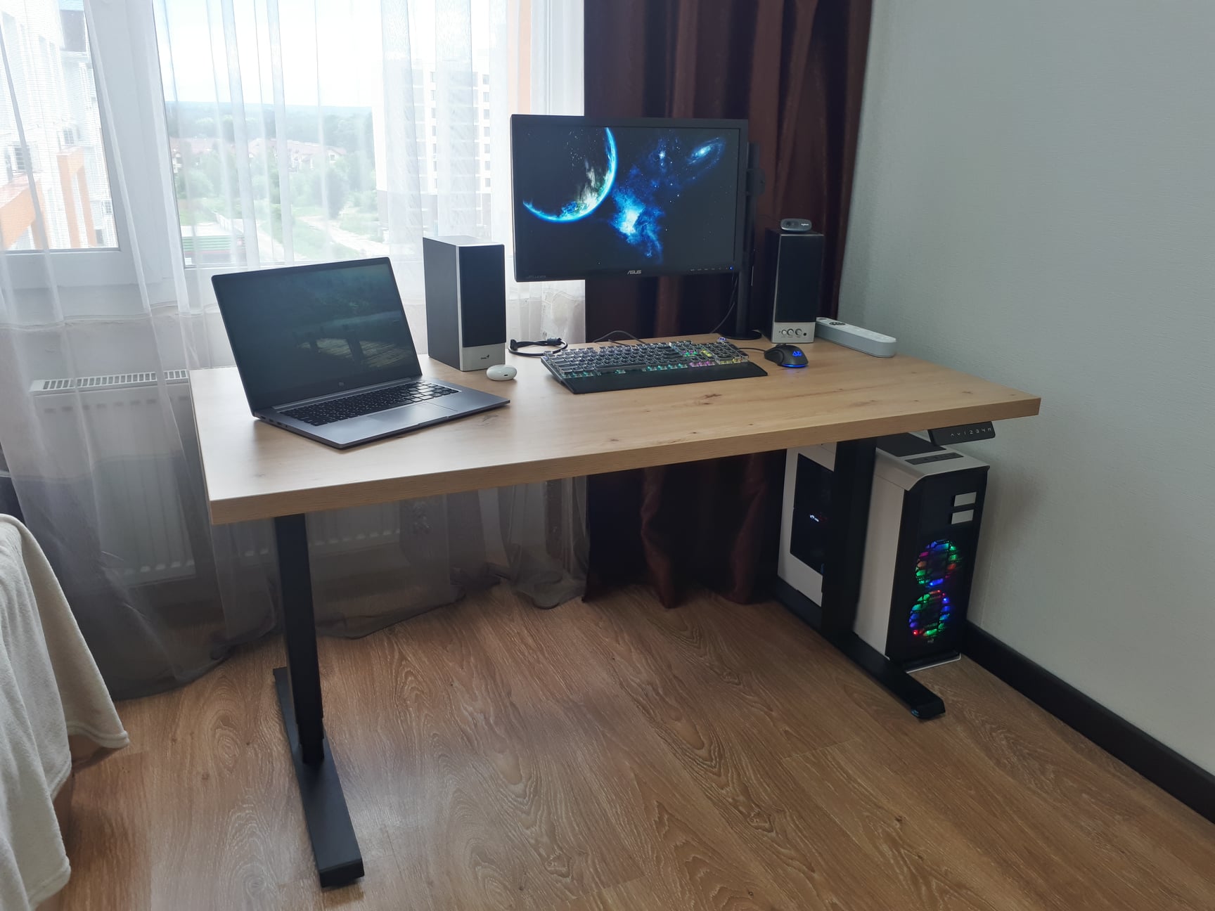 Итак, после приобретения уже пользуюсь столом больше 3 месяцев. Высоту регулирую под себя с точностью до миллиметра, как для работы стоя так и для работы сидя (потому что сидеть можно с вертикальной спиной, а также откинувшись назад и для этого нужна разная высота). Покупал стол в размере 1750 х 700 мм из дубового массива + органайзер для кабелей и розеток + коврик на стол и под стол. Размеры идеальные чтобы разместить всё необходимое и ещё добавить много чего дополнительно на ваше усмотрение. Функциональность стола отличная. Сборка довольно простая, если умеете пользоваться шуруповертом и отличаете болтик от винтика.