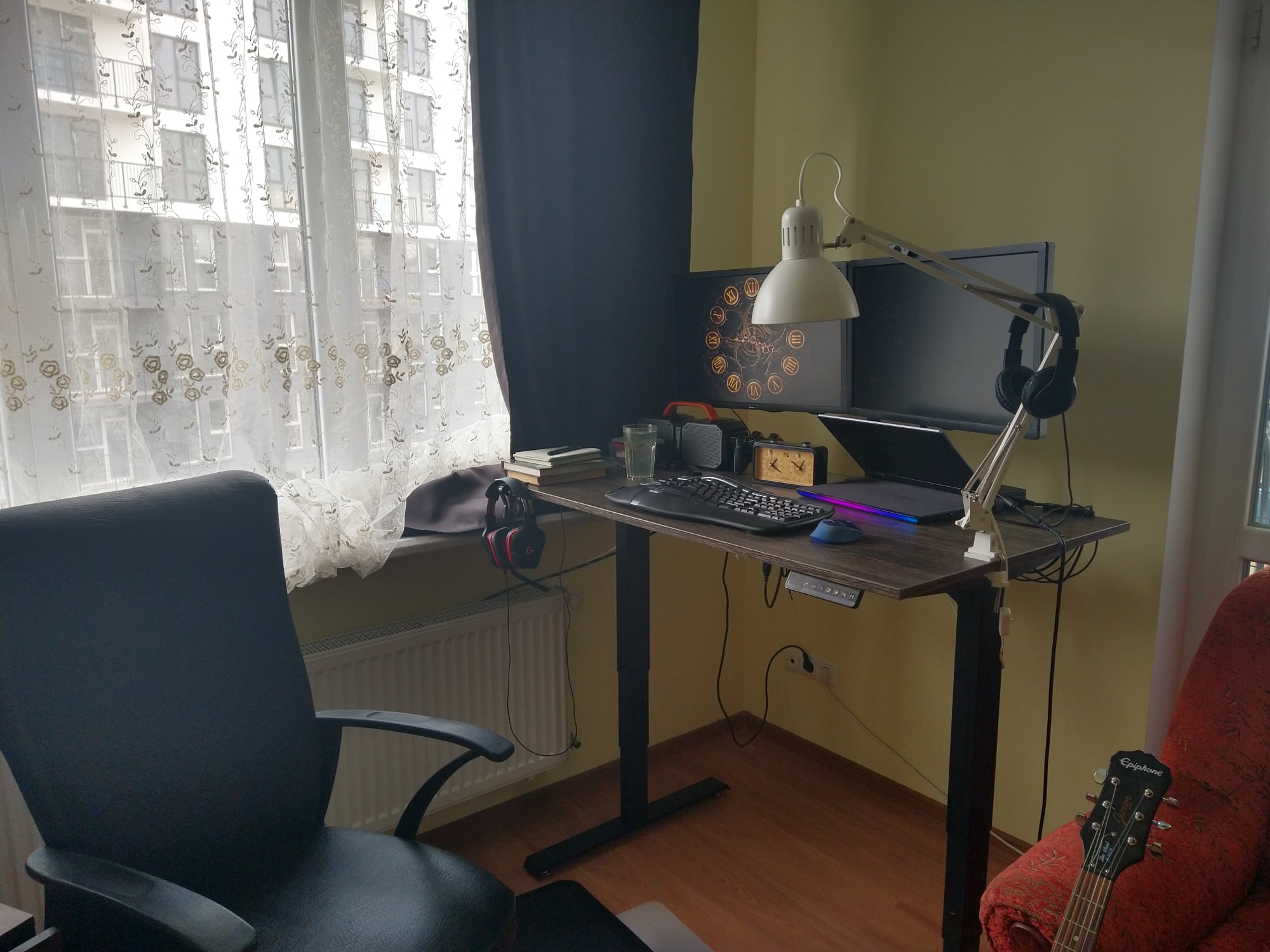 Стол для работы стоя или сидя, куплен вот тут @StiyStill. Отличный стол!