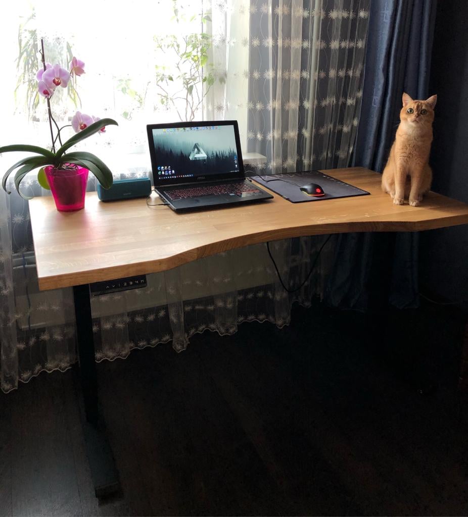 Придбав стіл, оскільки останнім часом багато чув про користь роботи стоячи і хотілося перевірити, чи дійсно це впливає на самопочуття та продуктивність. Перші дні були незвичні: працювати стоячи складніше, ніж здається. В ногах швидко відчувається напруга. На даний момент в основному продовжую роботу сидячи. Для роботи стоячи потрібно більше витривалості. Сам стіл дуже якісний: масивний дубовий масив, зручний, стійкий, нічого не хитається. Серед мінусів: 1) одна з дощечок масиву має білі вкраплення. Вдень нічого непомітно. При освітлені лампою вигладає як пляма. 2) Металева основа має доволі гостре ребро і легко пошкодити ногу 3) Коти навчилися натискати на перемикач висоти стола, коли блокування на пульті відсутнє. @stiystil