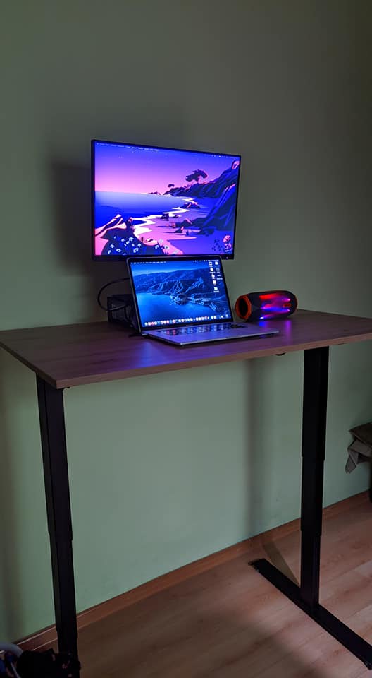 Користуюся власним столом майже місяць, до того позичав в колеги щоб зрозуміти чи він мені потрібен. Болі в спині від постійної роботи сидячи змусили задуматися над варіантами змін. Коробка з принтера чи сніданковий столик з IKEA не підійшли. Стіл дуже гарної якості і туди без проблем помістилися всі кабелі та ноутбук з монітором 24 дюйми. Також дякую консультанту за пораду замовити килимок, дійсно тепер ніякого дискомфорту для ніг. Загальне самопочуття стало кращим, зросла концентрація, особливо її не вистачало після обіду.