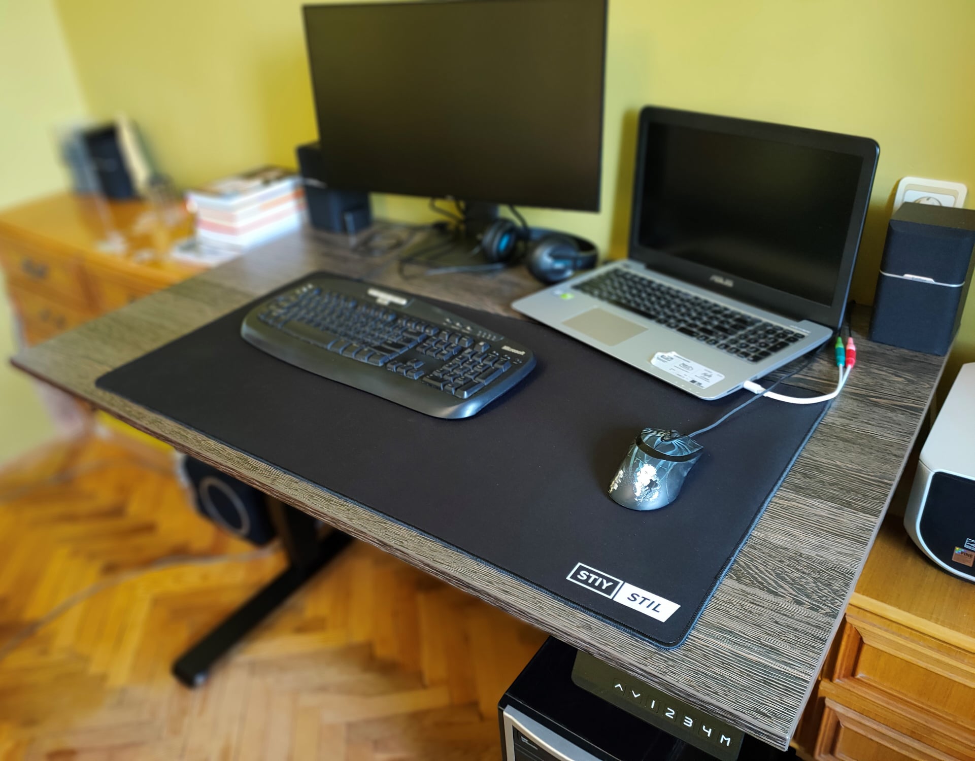Хороший стіл – основа всього сетапу, а я давно вже мріяв про великий стіл без усіляких непотірбних шухлядок, перегородок чи ще чого, які тільки заважають ногам і не дають тобі розвернутись як хочеш. В звичайних меблевих магазинах я не міг знайти те, чого хочу. Аж потім пригадав, що колись мій колега купив собі StiyStil Solid. Тоді я той виріб не оцінив, але запам’ятав, що зроблений він був дуже якісно.