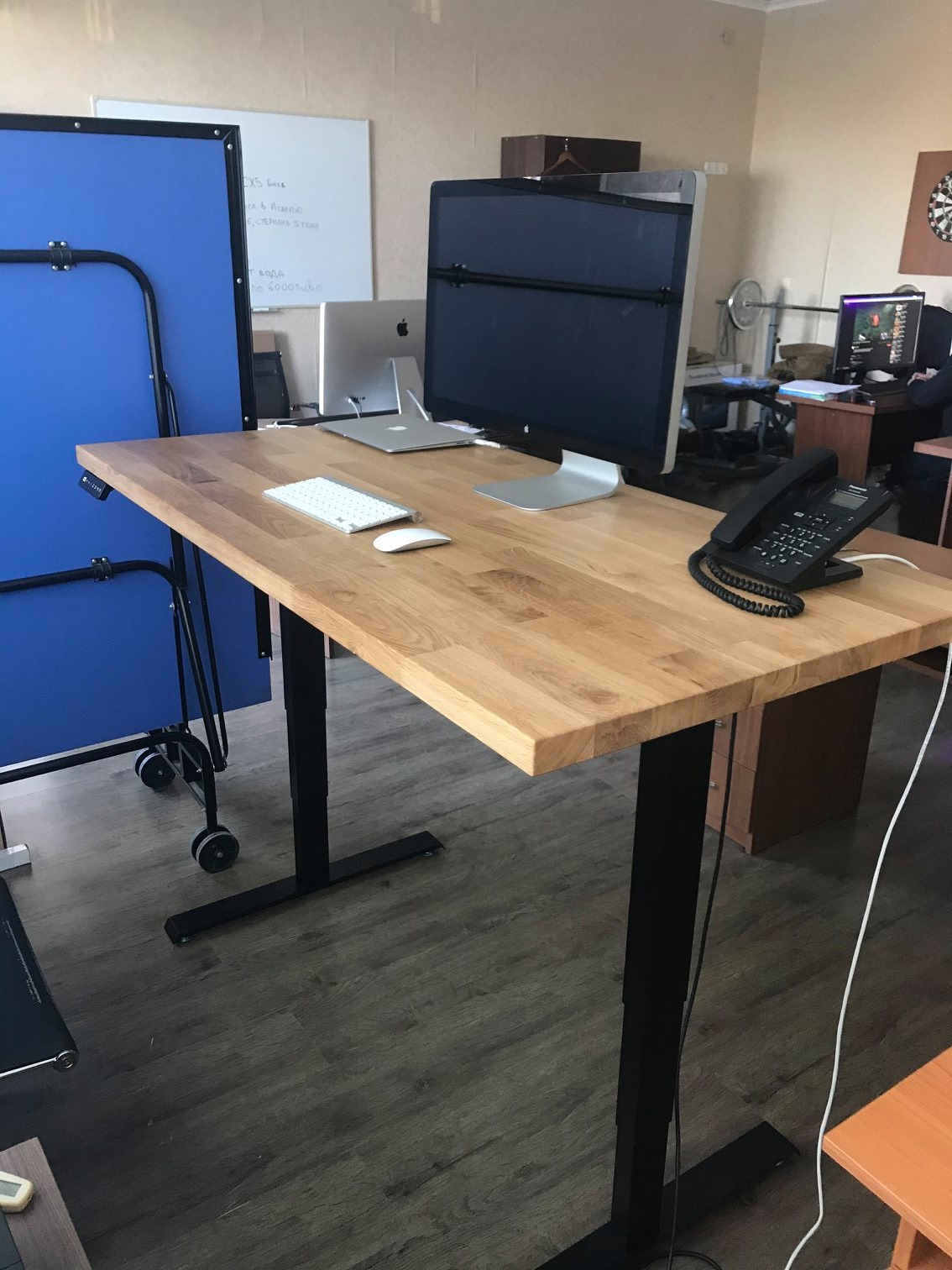 Добрый день. В сентябре 2019 решили попробовать купить в офис Стой стол с электрическим регулированием высоты. Причина банальная – за 5 лет сидячей работы начала болеть спина, а именно поясница. Заказали стой стол из дубовой столешницы. Доставка бесплатная, отправили через 1 неделю. На сборку стола ушло 1.5 часа (в сумме за два дня). Мотор работает тихо и плавно, все нравится и устраивает, а главное поясница намного меньше болит. В первую неделю только ногам было тяжело стоять с непривычки, потом это прошло. Итог: намного меньше болей в спине (их почти теперь нет), в будущем будем брать всем сотрудникам такие столы. Хотелось бы как опцию небольшую тумбочку для бумаг и папок под стол. Всем рекомендую данный стол!