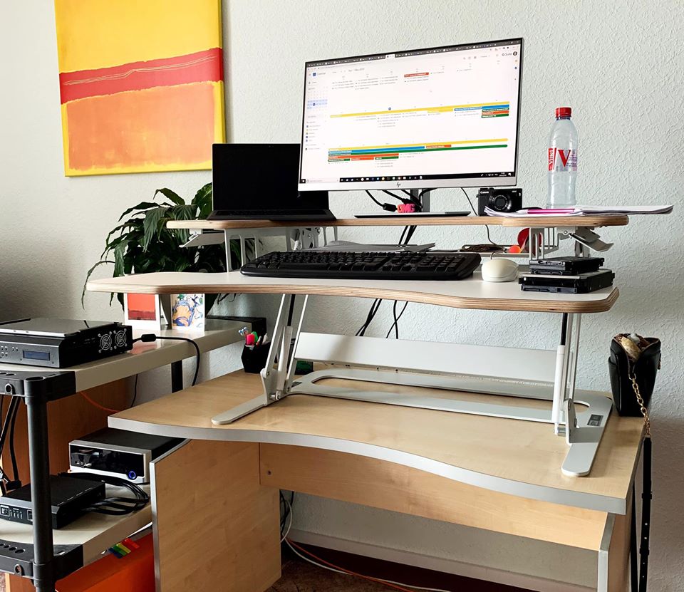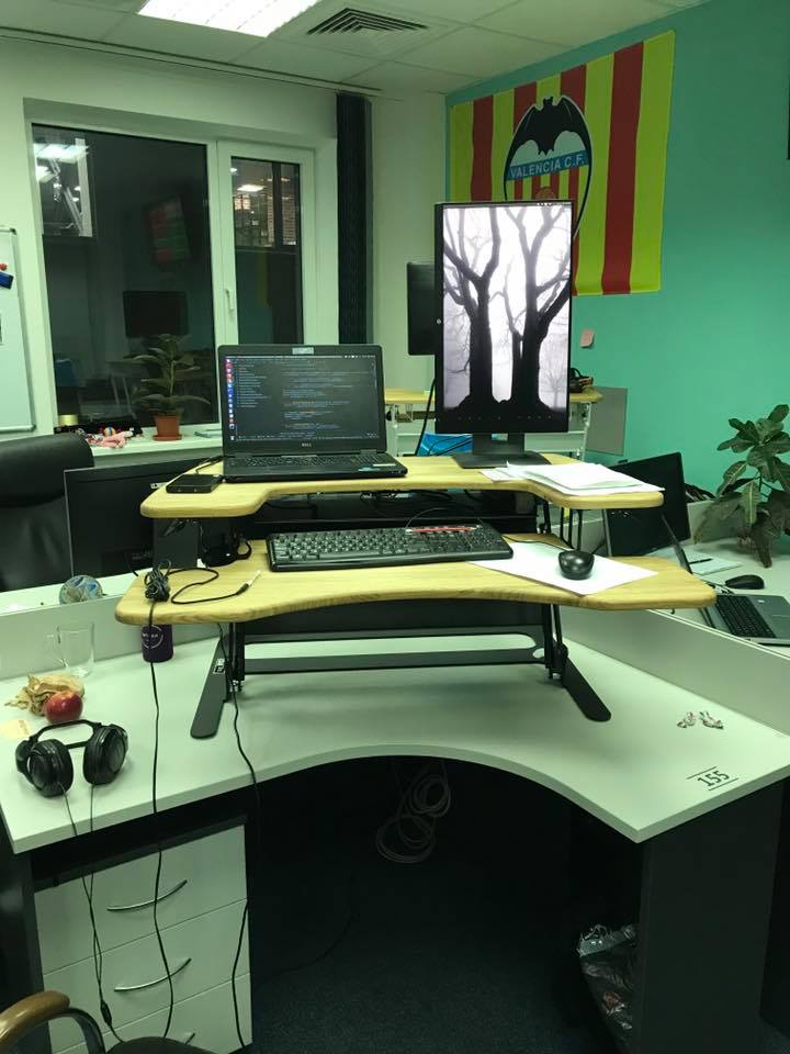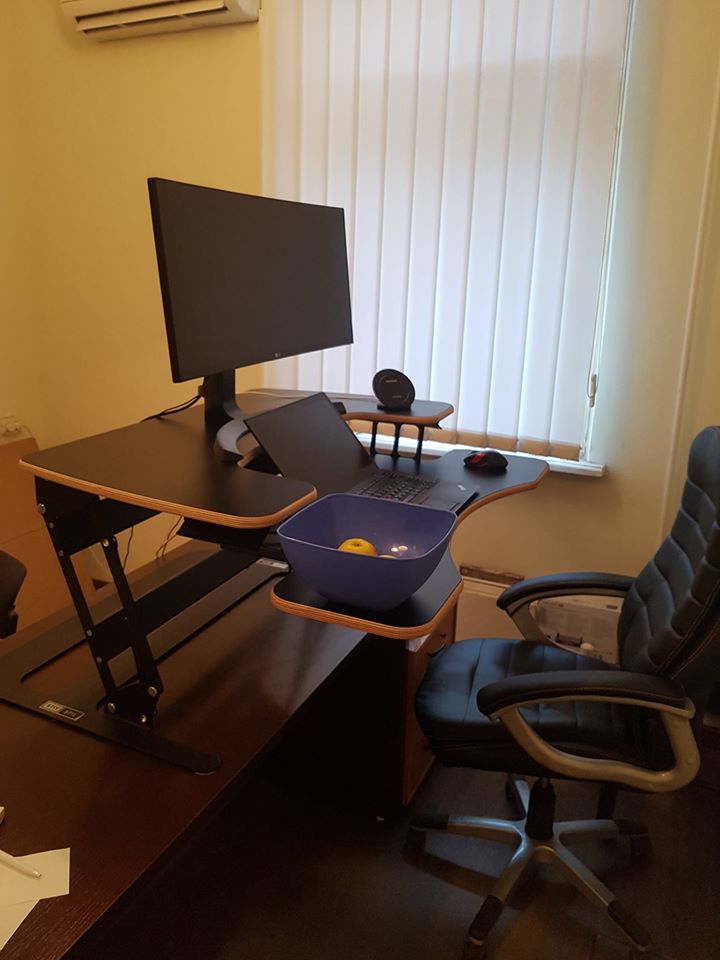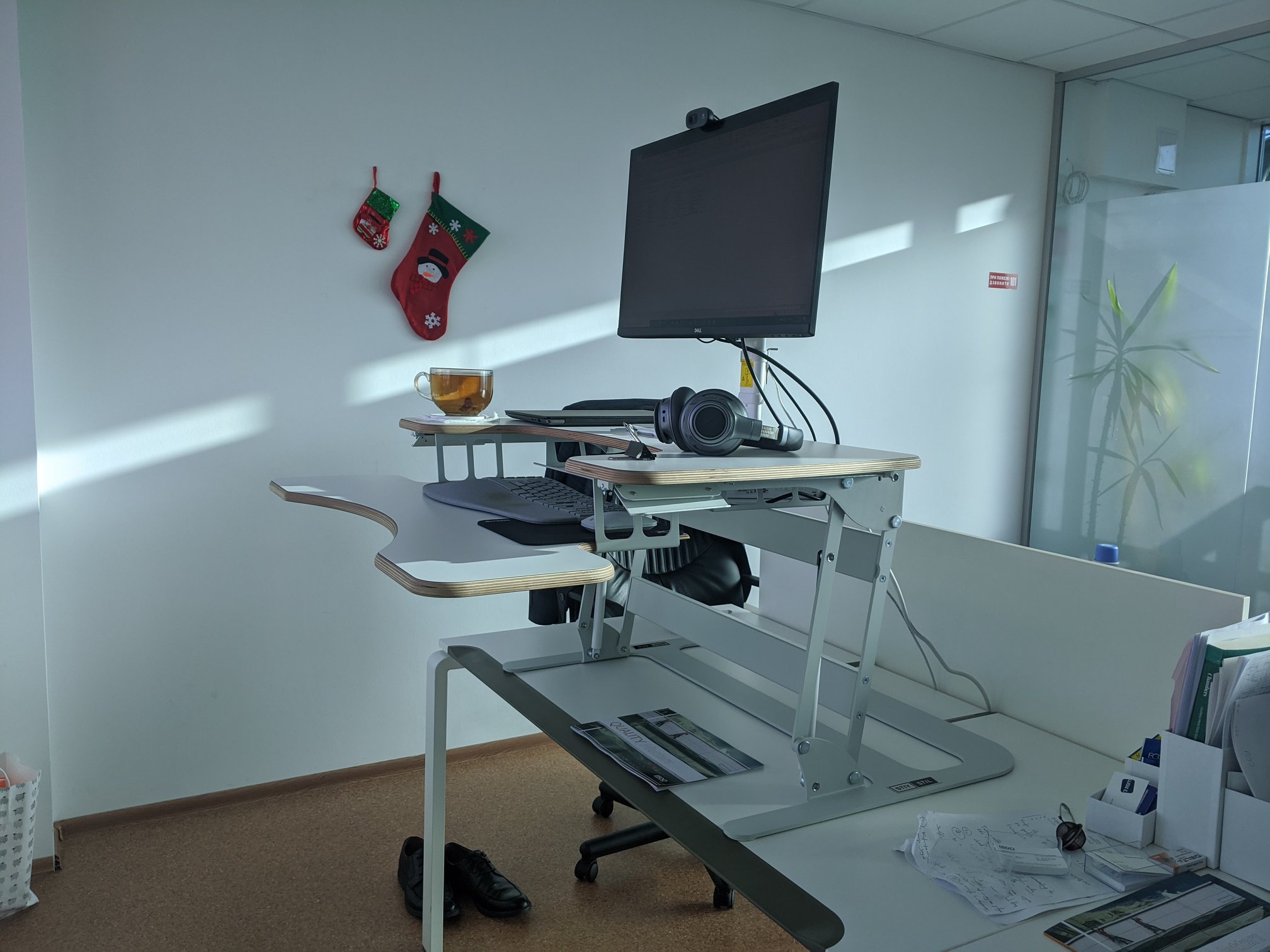 Скоро 5 місяців як я працюю не тільки сидячи. В грудні моє робоче місце отримало підвищення ? Для всіх, кого цікавить здоров’я спини, системи кровообігу, травлення і Бо зна ще чого, та й тих, кому просто нудно постійно сидіти, стіл зі змінним положенням – це дуже крута річ. Довгий час я дивилась в бік подібних рішень і, зрештою, зупинилась на Stiystil (купуймо українське ?) За пять місяців враження цілком позитивні: не виправдались побоювання, щодо хиткості столу, підйомний механізм працює легко, що важливо, адже я можу змінювати положення столу кілька разів на день (і це правильно, бо проводити цілий день в одному положенні – це найгірша стратегія, неважливо стоїш ти чи сидиш). Найкраща фіча – вдвох біля компа зручніше стояти, ніж сидіти і обговорення проходить більш динамічно. Тож якщо ви замислюєтесь, чи воно того варте, моя відповідь – однозначно так.