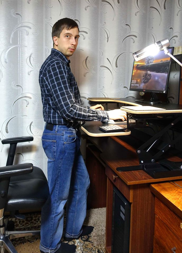 Увидел у коллег, понравилась идея – захотелось попробовать. Большую часть времени проводишь сидя в офисе и подобное решение как нельзя кстати, если задумываешься о своём здоровье. Ощущения отличные – стоя работать довольно комфортно, спина стала уставать заметно меньше. Спасибо, Stiystil