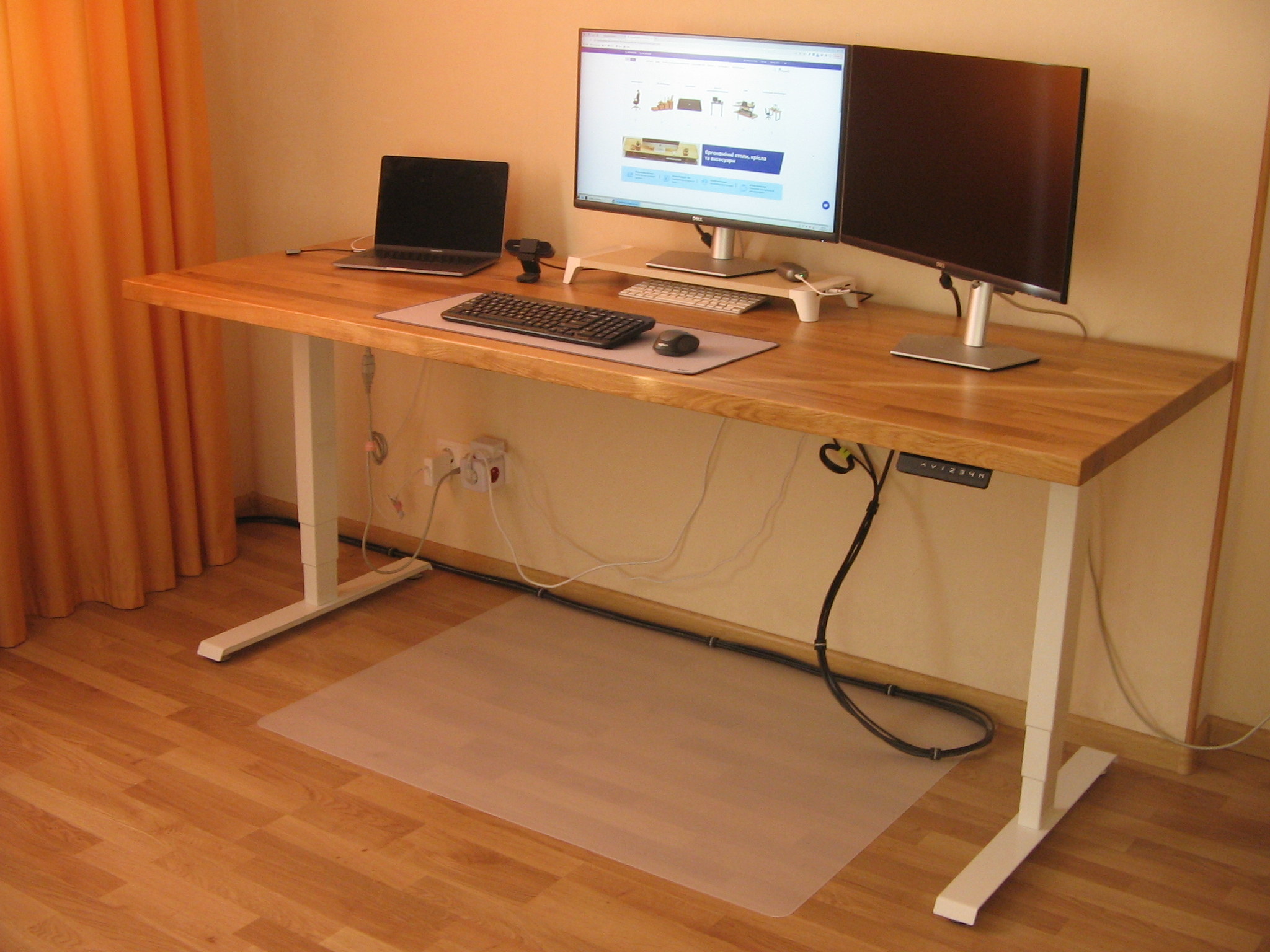 Придбав стіл, оскільки останнім часом багато чув про користь роботи стоячи і хотілося перевірити, чи дійсно це впливає на самопочуття та продуктивність. Перші дні були незвичні: працювати стоячи складніше, ніж здається. В ногах швидко відчувається напруга. На даний момент в основному продовжую роботу сидячи. Для роботи стоячи потрібно більше витривалості. Сам стіл дуже якісний: масивний дубовий масив, зручний, стійкий, нічого не хитається. Серед мінусів: 1) одна з дощечок масиву має білі вкраплення. Вдень нічого непомітно. При освітлені лампою вигладає як пляма. 2) Металева основа має доволі гостре ребро і легко пошкодити ногу 3) Коти навчилися натискати на перемикач висоти стола, коли блокування на пульті відсутнє. @stiystil