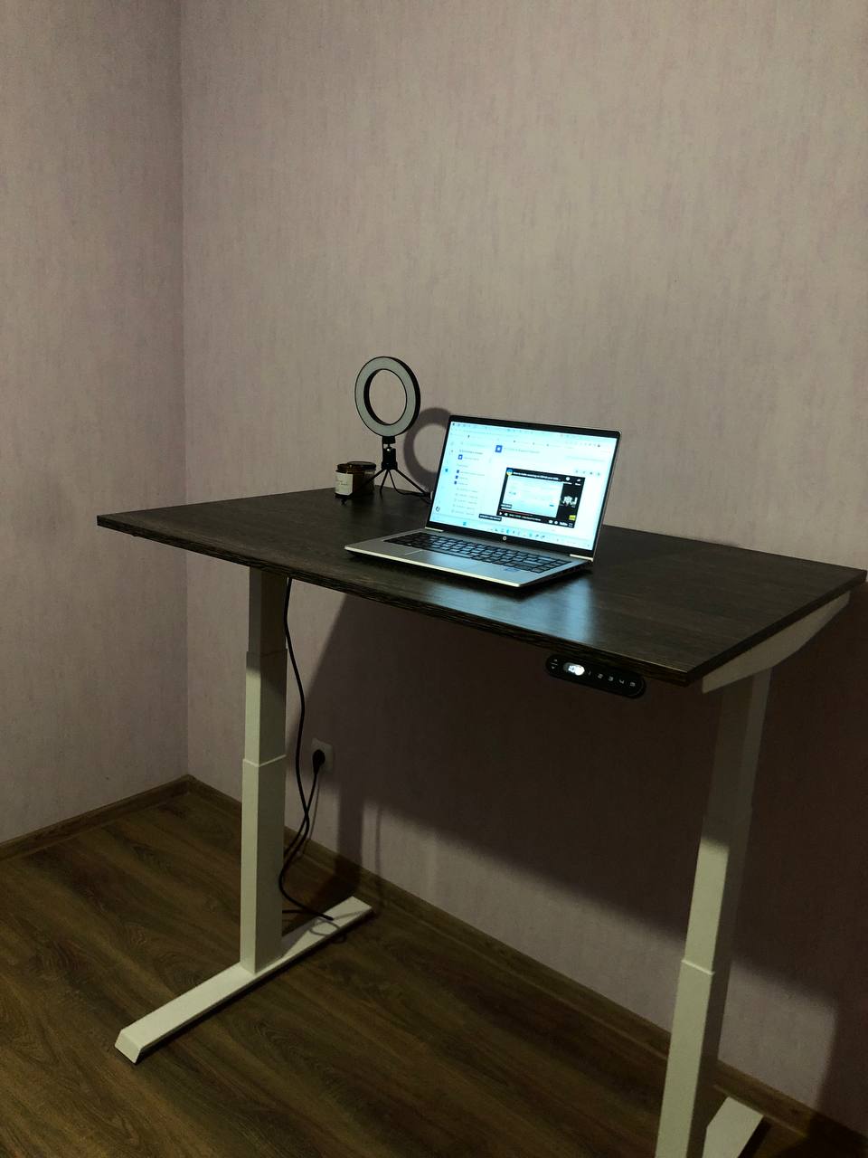 Серед кількох моделей я вибрав Lite варіант, виглядає прикольно. Мій стіл має розміри 1500х750, але тут можна вибрати розмір на замовлення. Я взяв з білою столешнею в чорному кольорі ніжок, виглядає стильно. Регулювання висоти плавне і тихе, дуже сподобалося. Виглядає стіл надійно.