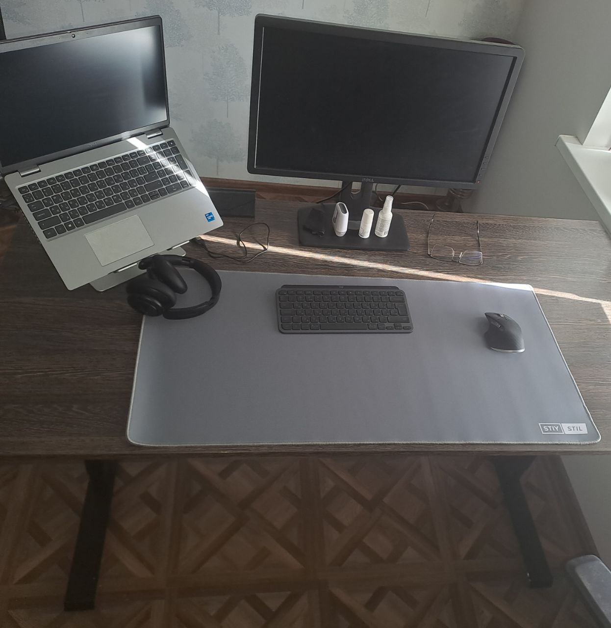 Базуючись на цих параметрах, я очікув знайти щось з натуральних матеріалів, які забезпечать надійне щеплення з поверхнею столу, та нададуть максимально стійку та гладку поверхню для ковзання мишки. Також хотілося перекрити всю поверхню столу по глибині, щоб можна було розміщувати ноутбук, клавіатуру та мишку на поверхні без перепадів.