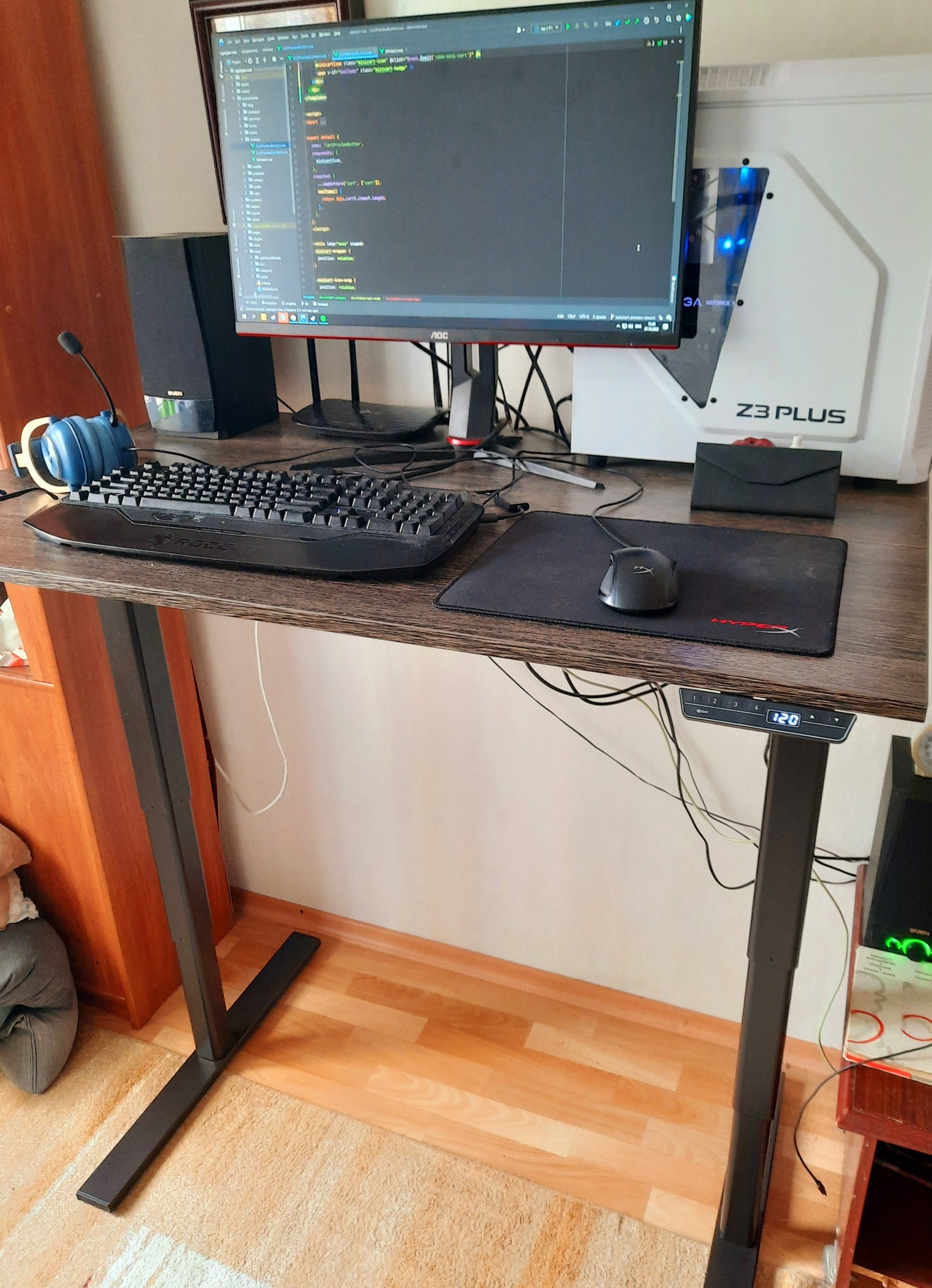 Так как я работаю из дома, то давно думал о столе с регулируемой высотой. Очень удобно чередовать работу стоя и сидя.
