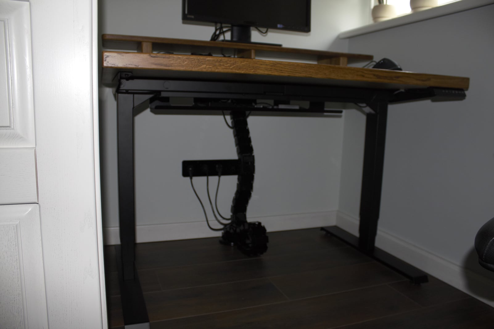 Тепер про мінуси. А з мінусів… Після роботи стоячи я зрозумів, що стоячи робота — це теж не порятунок. Стоячи спина напружуються майже як і сидячи, просто спина відчуває дещо інший вектор навантаження. Тому ключ до довгої продуктивної роботи – регулярна зміна положення тіла. І тому я радий що обраний мною стіл, дозволяє міняти положення без особливого відволікання від роботи – після тижня-двох роботи за столом зміна положення відбувається практично без виходу з потоку.