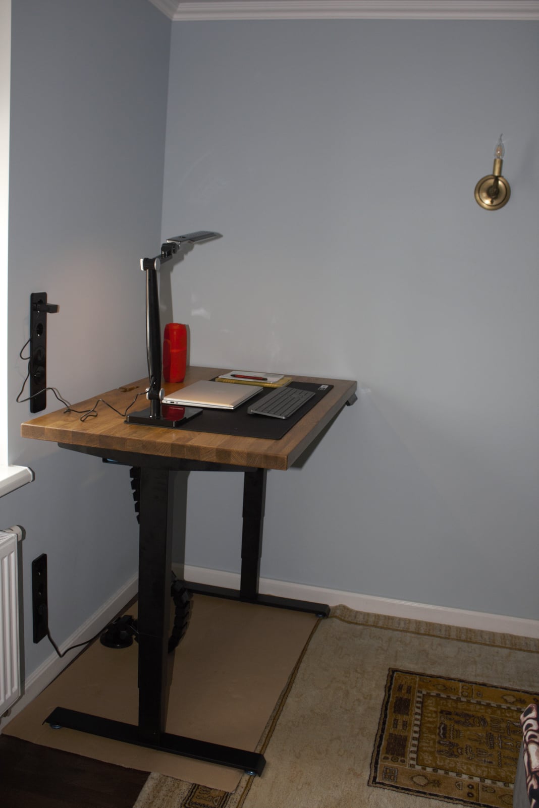 Придбав стіл, оскільки останнім часом багато чув про користь роботи стоячи і хотілося перевірити, чи дійсно це впливає на самопочуття та продуктивність. Перші дні були незвичні: працювати стоячи складніше, ніж здається. В ногах швидко відчувається напруга. На даний момент в основному продовжую роботу сидячи. Для роботи стоячи потрібно більше витривалості. Сам стіл дуже якісний: масивний дубовий масив, зручний, стійкий, нічого не хитається. Серед мінусів: 1) одна з дощечок масиву має білі вкраплення. Вдень нічого непомітно. При освітлені лампою вигладає як пляма. 2) Металева основа має доволі гостре ребро і легко пошкодити ногу 3) Коти навчилися натискати на перемикач висоти стола, коли блокування на пульті відсутнє. @stiystil