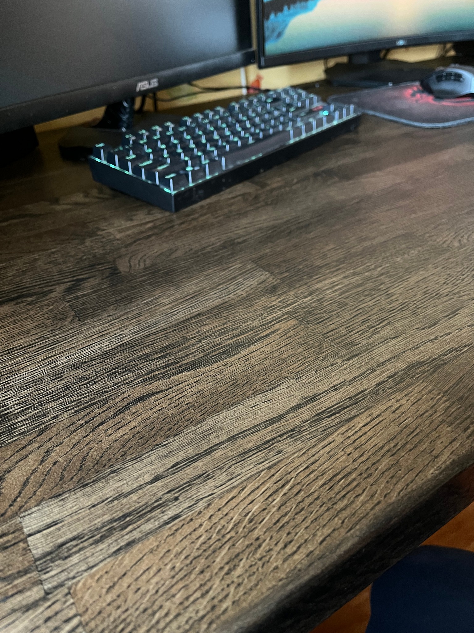 Базуючись на цих параметрах, я очікув знайти щось з натуральних матеріалів, які забезпечать надійне щеплення з поверхнею столу, та нададуть максимально стійку та гладку поверхню для ковзання мишки. Також хотілося перекрити всю поверхню столу по глибині, щоб можна було розміщувати ноутбук, клавіатуру та мишку на поверхні без перепадів.