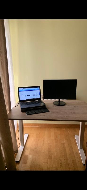 Що до самого користування нарікань нема, окрім лише стиків на поверхні стільниці які постійно акцентують на собі увагу… механізм працює справно, навіть зупиняється і “здає” назад якщо у щось впирається. Працювати зручно як сидячи так і стоячи завдяки виставленню необхідної висоти.