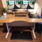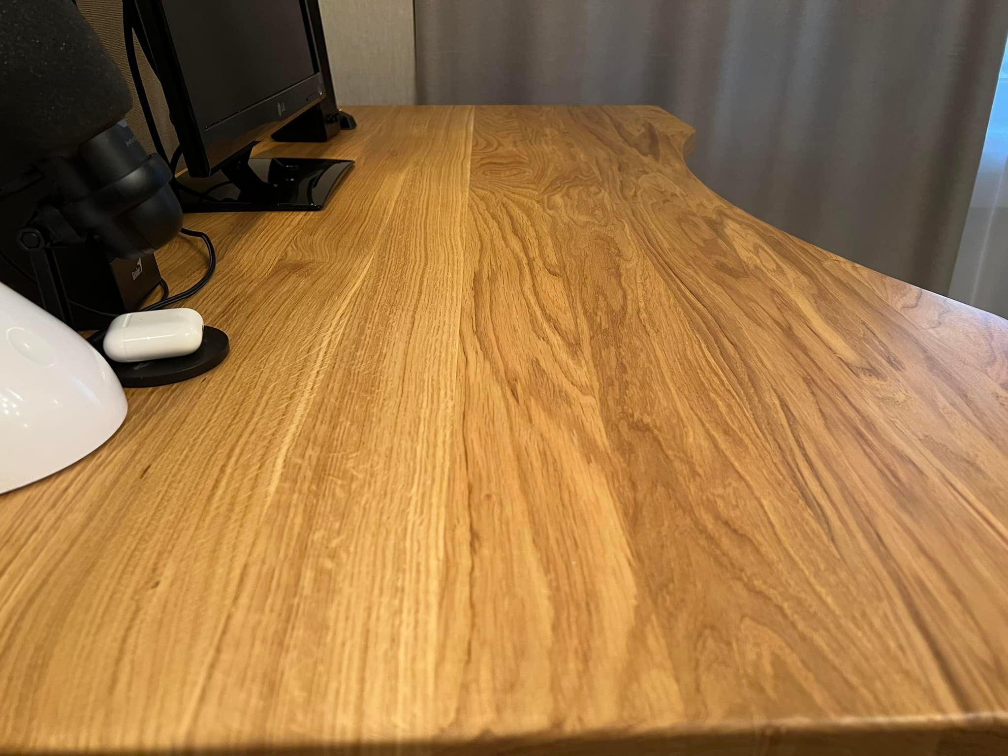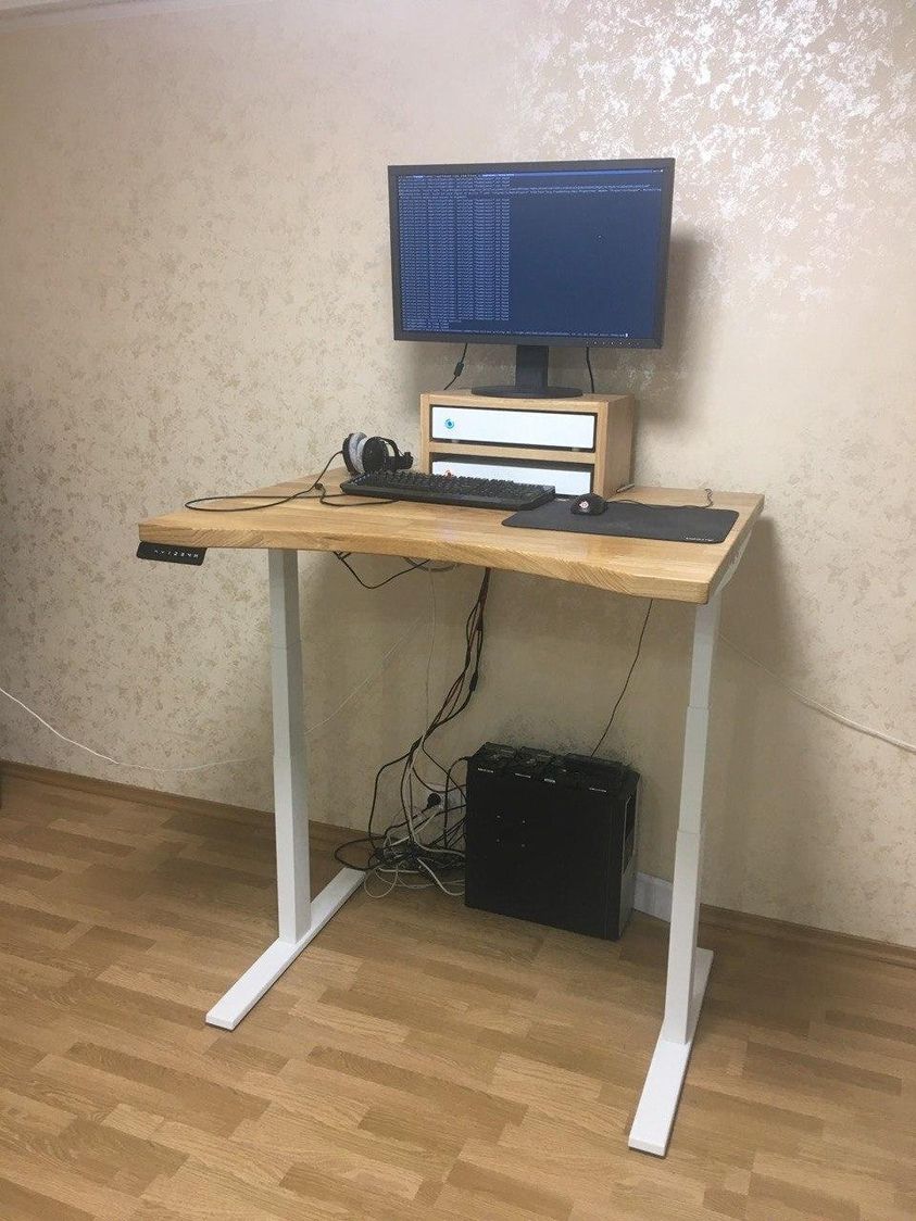 Первую неделю работал без подставки. Работать за этим столом – настоящее эстетическое удовольствие. Хоть это и не цельный дубовый массив, а сборка из разных частей, выглядит круто.