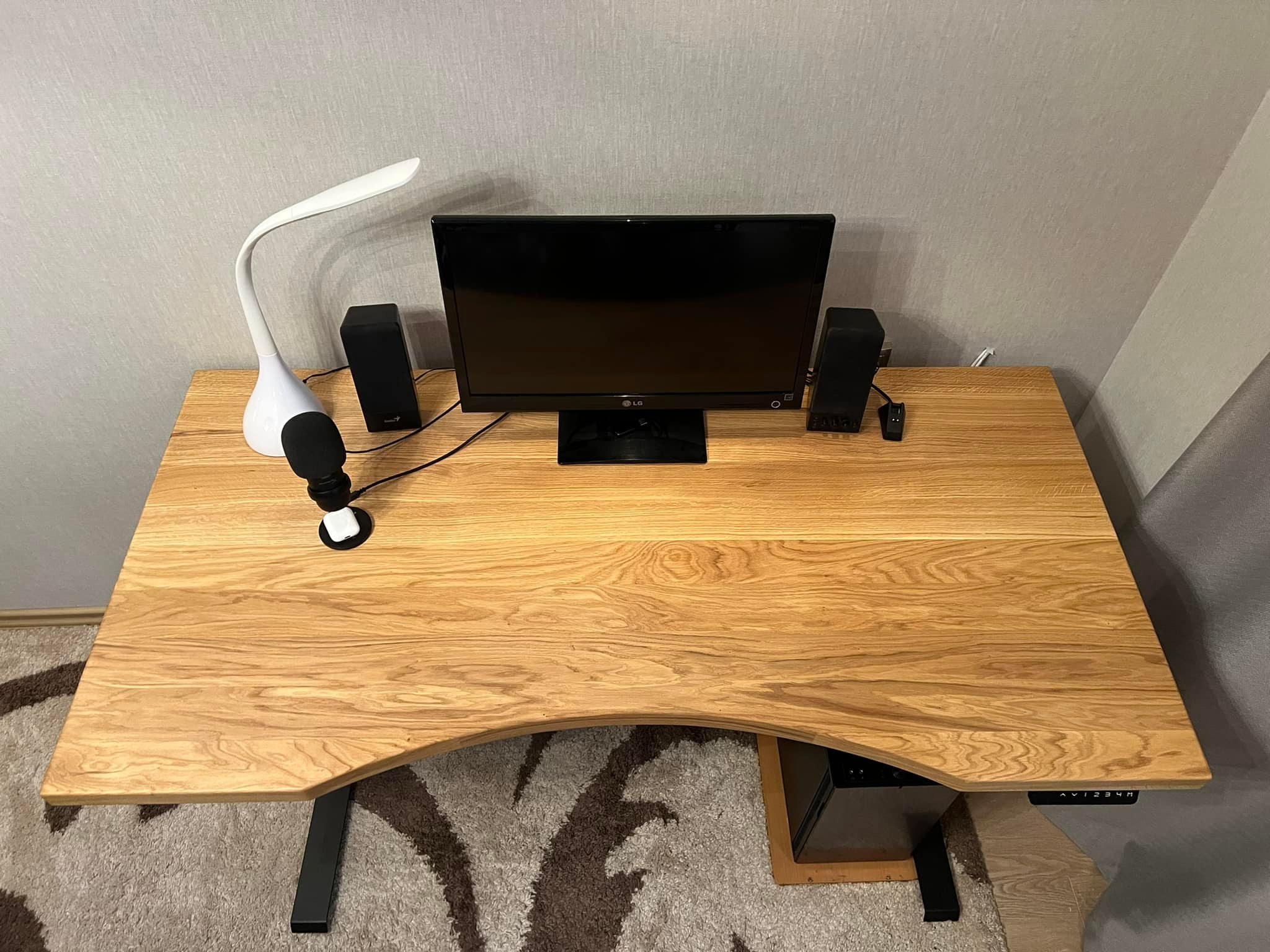 Заказал “Стіл з електрорегулюванням PRO”, подобрал размер столешницы, опоры, коврик для ног и органайзер для проводов. Ждал почти месяц, потому что захотел опоры, которых на тот момент не было в наличии, и их надо было подождать.
