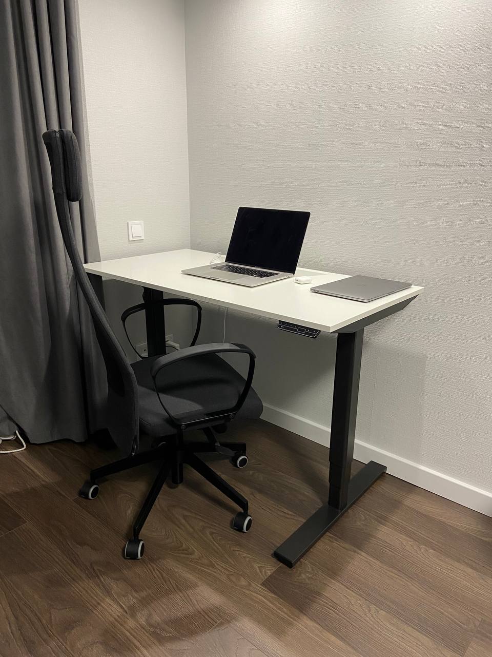 Уже месяц пользуюсь столом. Нареканий нет от слова совсем. Качество конструкции на высоте! Сразу настроил себе 2 режима для работы стоя и сидя. И ещё 2 режима – для жены.