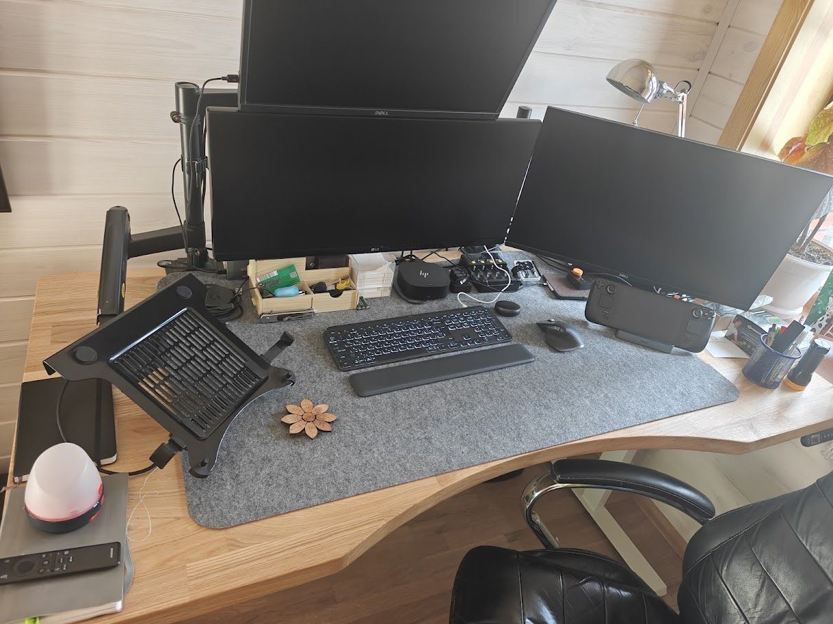 Робота з дому диктує свої правила тож декілька тижнів назад купив круту річ. Стіл з підйомним механізмом для роботи стоячи від Stiystil Виявилося, що комбінація роботи стоячи і сидячи підвищує концентрацію і зменшує втому в кінці дня. М‘який килимок допомагає ногам не втомлюватися, а органайзер під стільницю дозволяє гарно влаштувати кабелі, щоб до розетки тягнувся лише один кабель подовжувача. Під час покупки турбувався, що в верхньому положенні, робоча поверхня не буде стійкою, проте стіл виявився напрочуд стійким. Такі перші відчуття від двох тижнів комбінування роботи стоячи і сидячи.