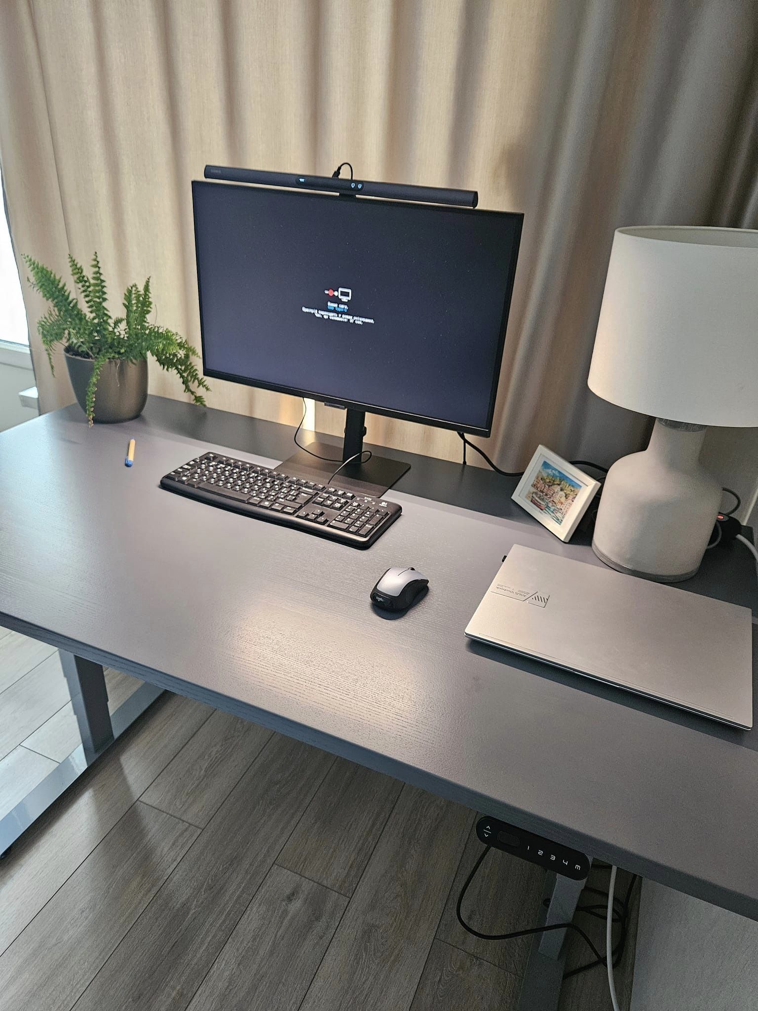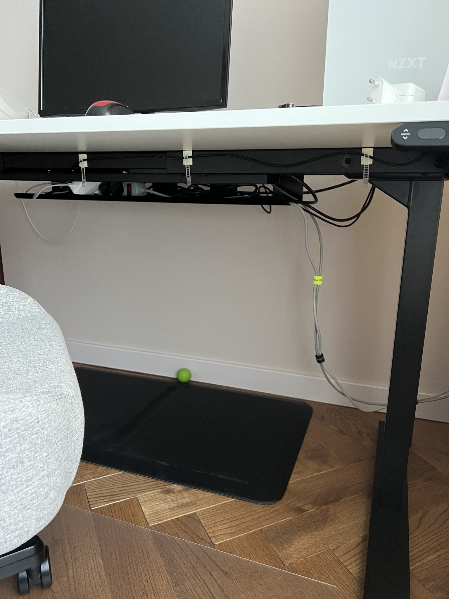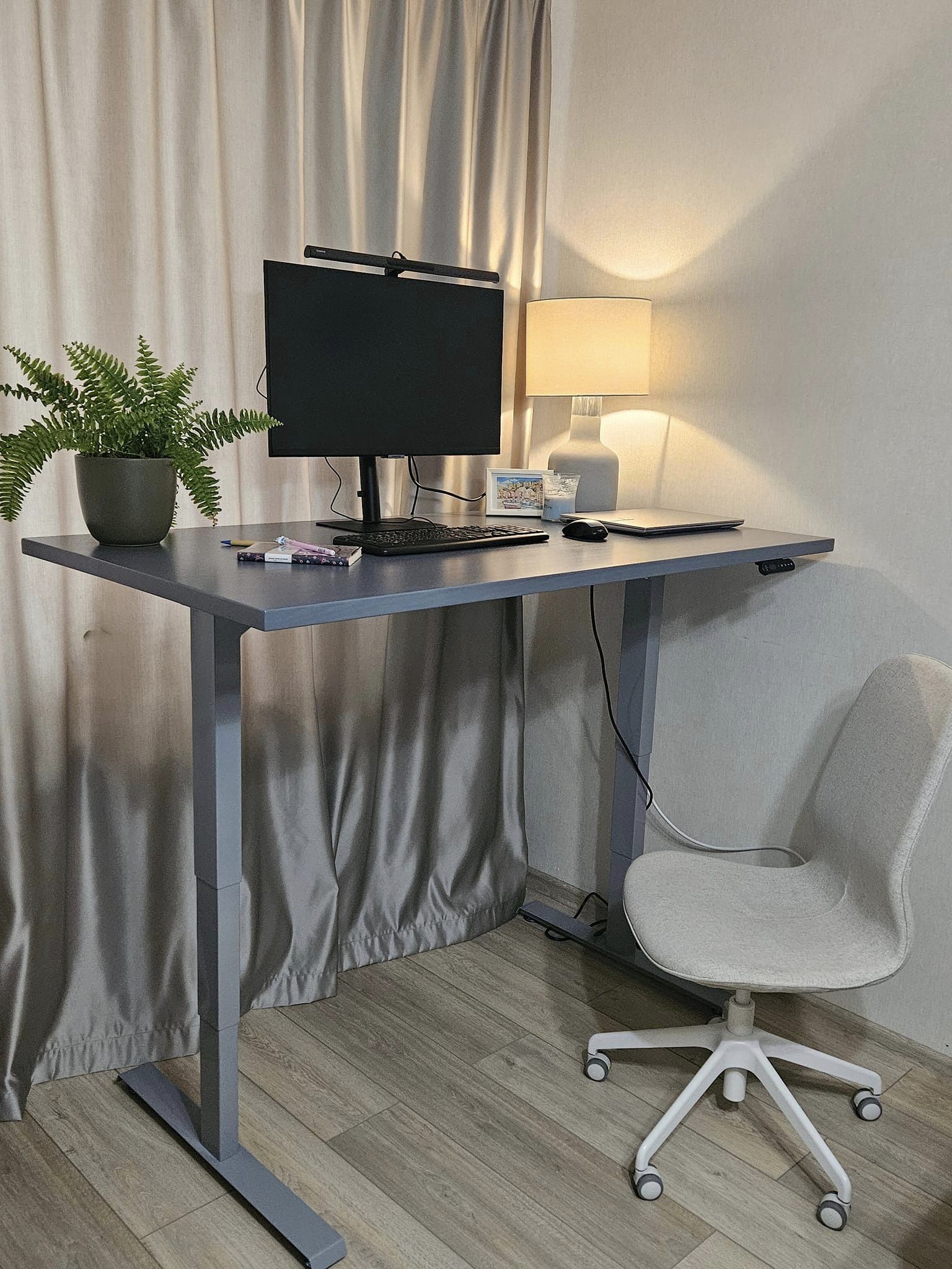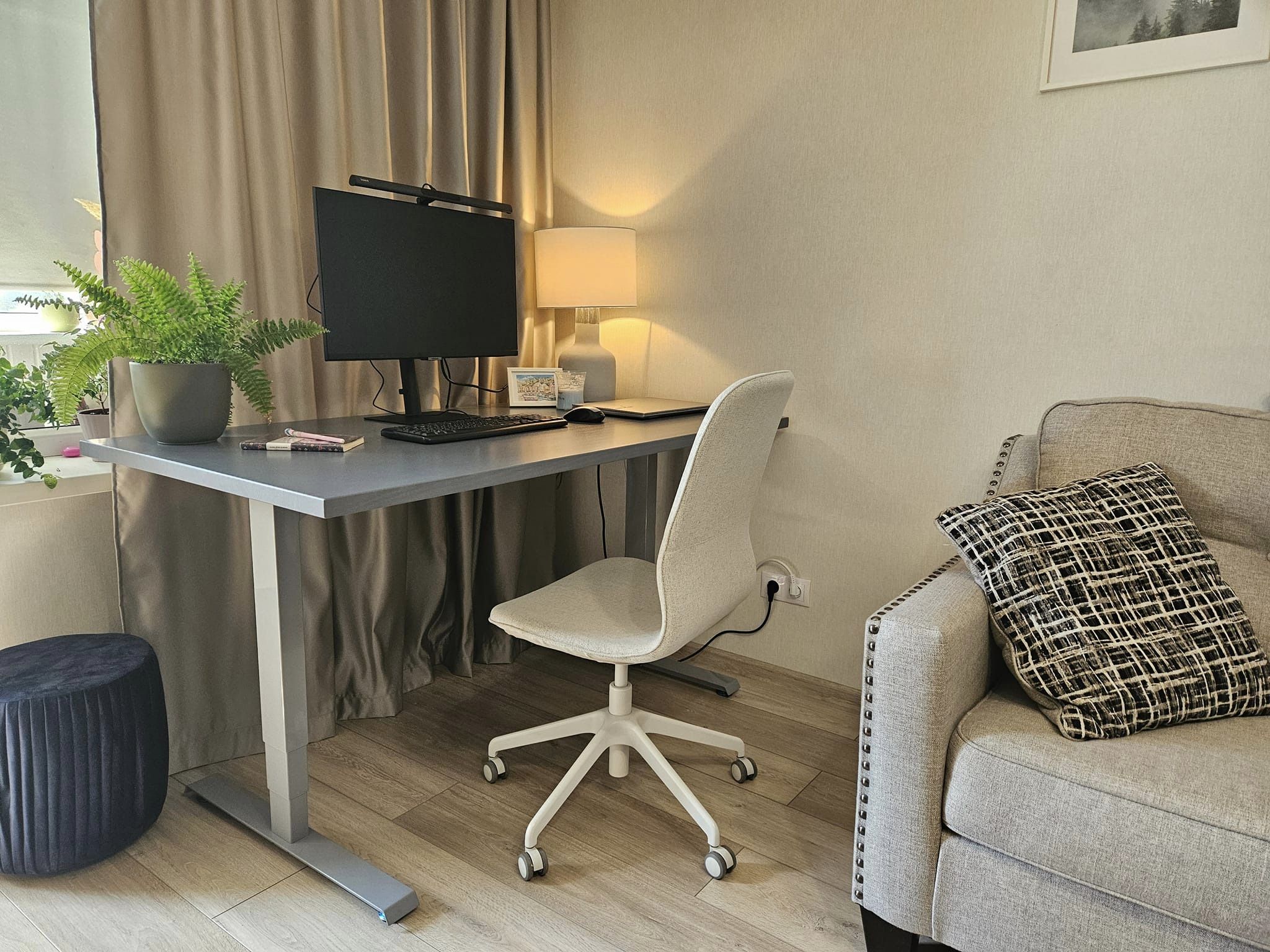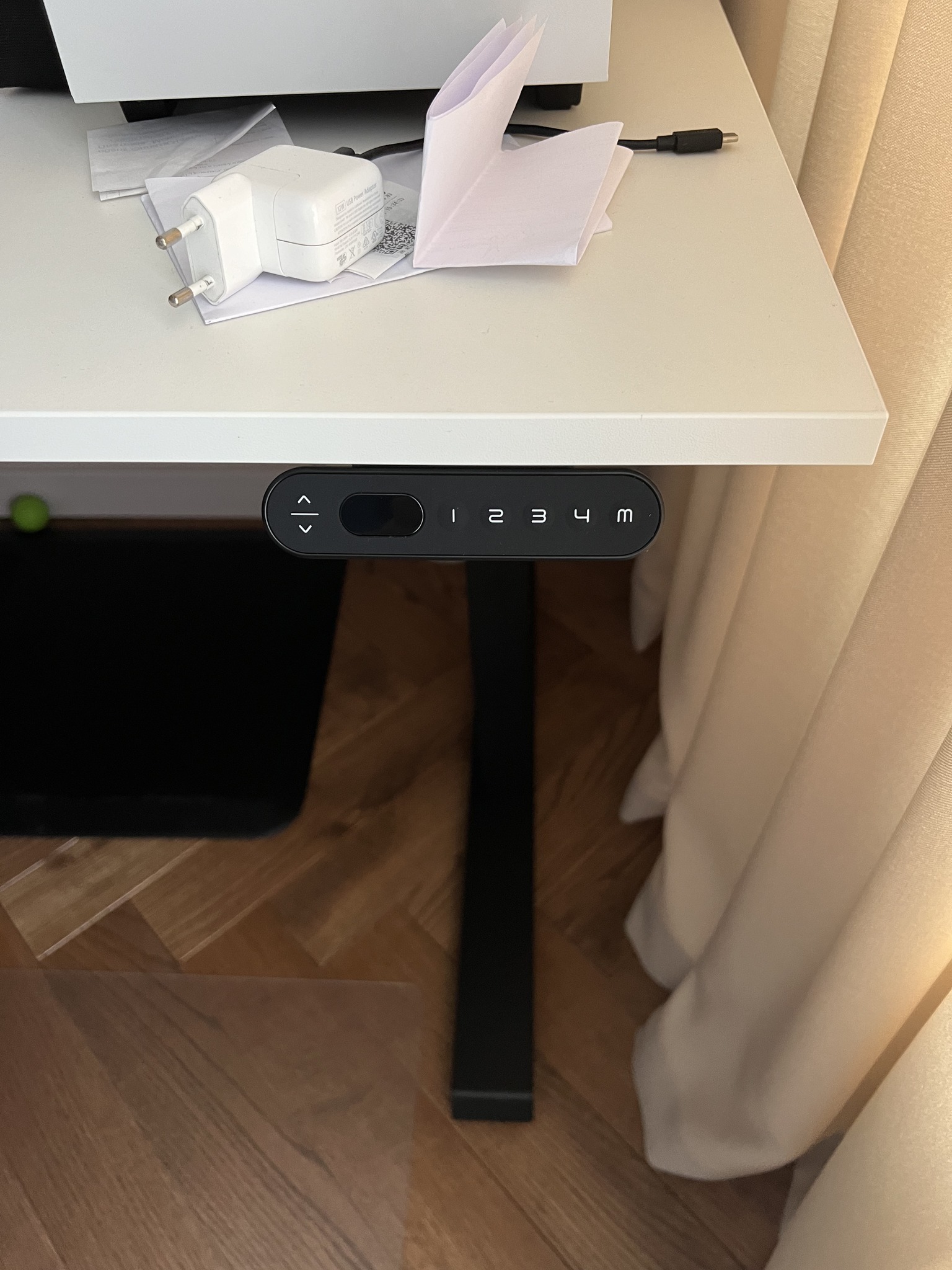 Після декількох тижнів використання можу з упевненістю сказати, що стіл повністю виправдав мої очікування. Його робоча поверхня досить простора, щоб розмістити всі необхідні для мене девайси: монітор 27 дюймів, ноутбук, акустику, а також залишити місце для дрібниць і документів. При цьому все залишається зручно доступним, без відчуття перевантаженості. Міцність і стабільність конструкції приємно здивували — навіть під час активної роботи стіл залишається нерухомим. Поверхня виглядає дуже естетично й приємна на дотик, що додає комфорту під час роботи.