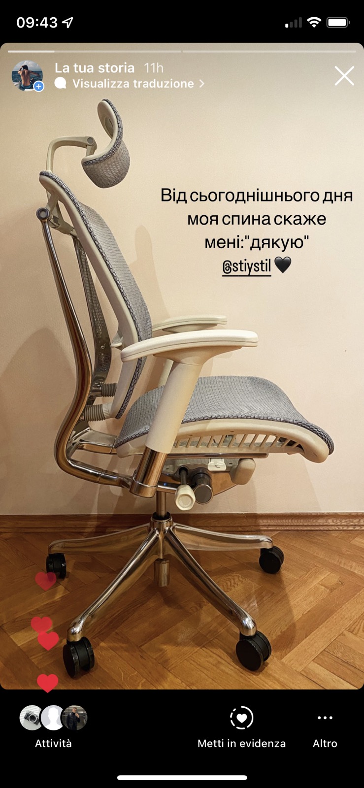 Через 3 роки роботи з дому моя спина та шия натякнули мені, що працювати з макбуком на колінах це не ок. Дуже дякую Stiystil за супер зручне крісло Profim ACCIS PRO в якому налаштовується абсолютно все щоб сидіти рівно і комфортно. Окрім стандартних налаштувань можна ще змінювати висоту та кут підлокітників, та обрати рівень попереку.