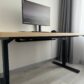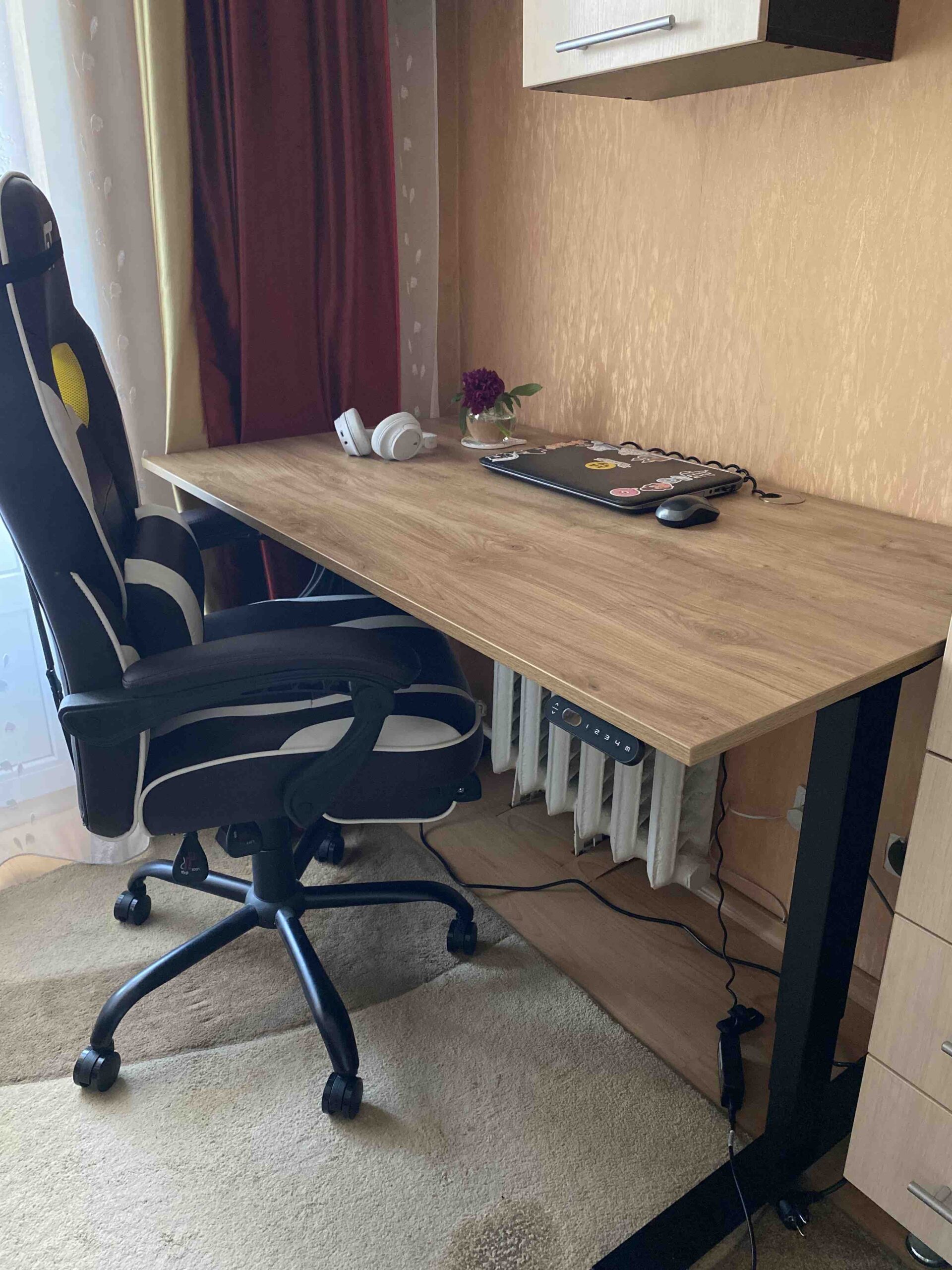 Пользуюсь уже полтора месяца, опускаю и поднимаю стол не меньше 5 раз в день может даже больше, преимущественно стою. При моем росте 190 см и весе 85 кг спокойно облокачиваюсь на край, стол стоит как камень и не шатается. Брал дубовую столешницу с заделом на будущее, так как стол дальнейшем обрастает парой мониторов на кронштейне, и не думаю что ДСП был бы хороший выбор.
