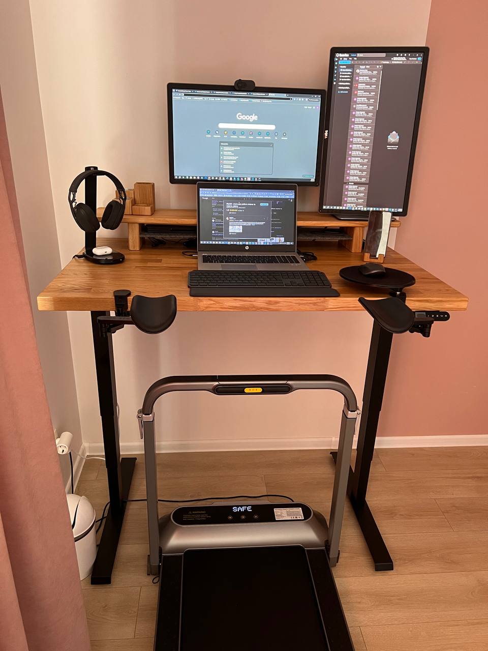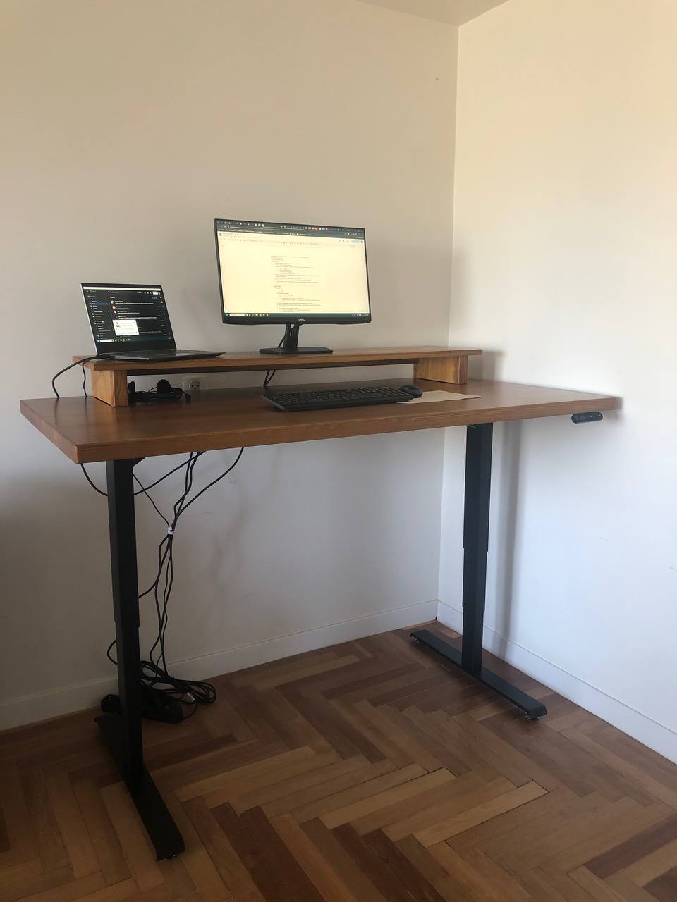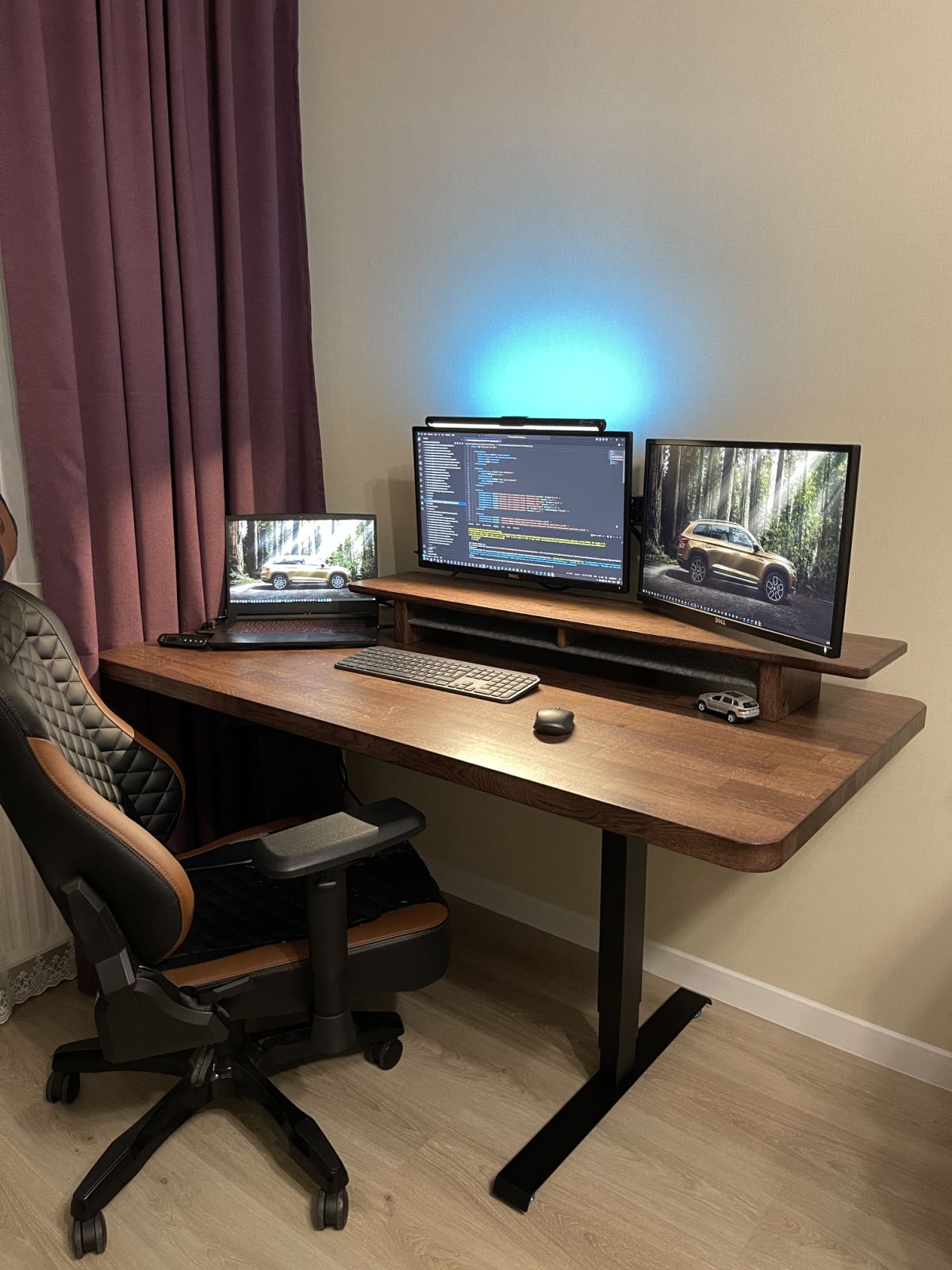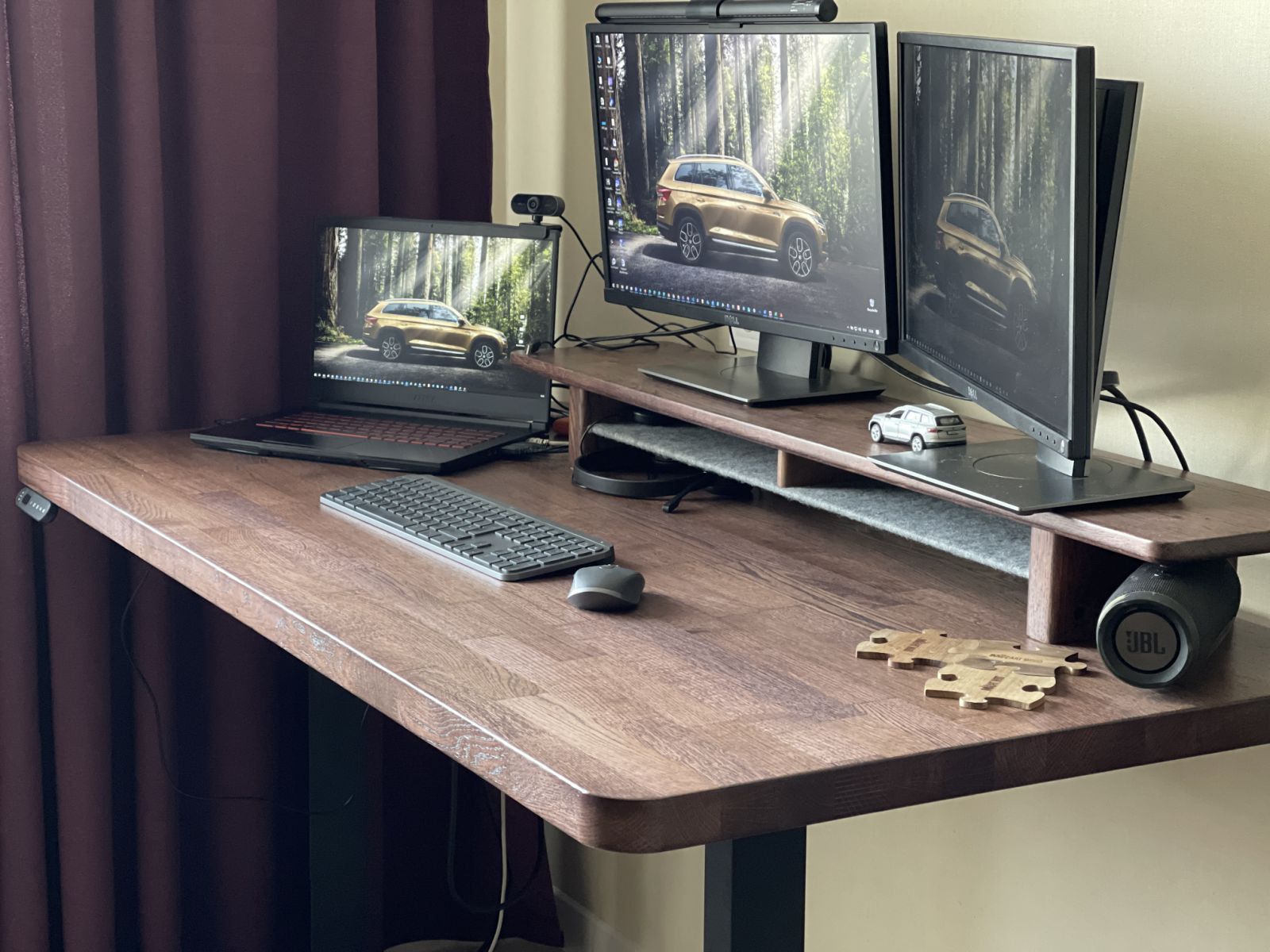У свої 28 років я маю спину літньої бабці Сидяча робота, малорухливий спосіб життя та хронічний стрес дуже бʼє по моєму хребту. Щоденні практики та заняття спортом звичайно сприяють ситуації, але що тоді робить з сидінням по 8 годин щоденно? Благо, я зараз працюю вдома, тому можу більш-менш урізноманітнити свій робочий процес 10-ти хвилинними розминками кожні 1-2 години, проте чесно зізнаюсь, я цього або взагалі не роблю, або зрідка Мені складно контролювати себе. В плані, я можу заліпнуть в комп, відповідаючи на імейли години на 2, процес затягуючий. Ми розмірковували з Артемом на предмет того, як організувати правильно робочий простір і почали гуглити різні сучасні підходи в його організації. Таким чином, ми дізналися, що, виявляється, людство вже придумало столи, які підіймаються на різну висоту за допомогою електроніки. Іншими словами: попрацював годинку сидячи, а потім тиснеш на кнопку, піднімаєш стіл і працюєш стоячи. Оце вау! Уміють же люди!