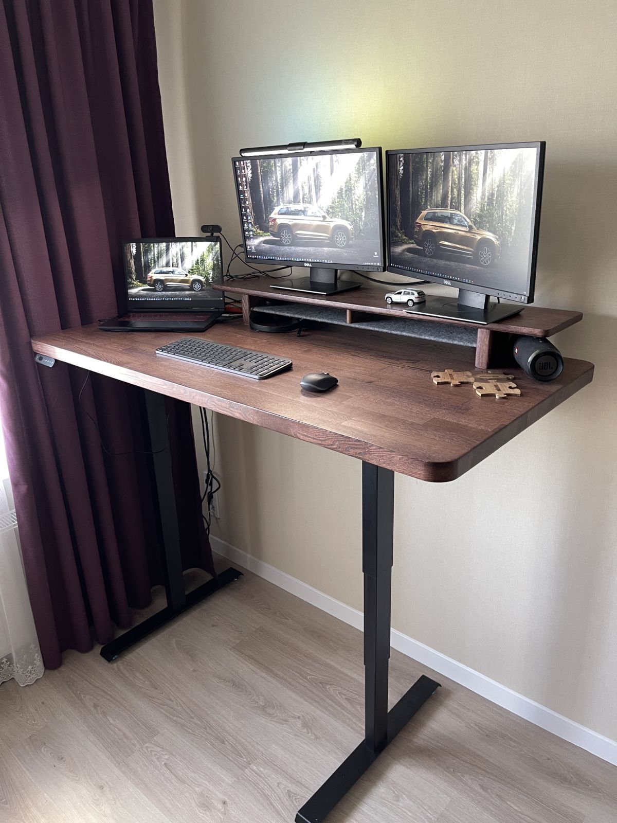 Дуже давно я мріяв про стіл з регулюванням висоти. Дуже хотів з масиву дерева але всюди попадалися тільки з ДСП. Потрапивши на сайт StiyStil я побачив саме той варіант який мене цікавить: стільниця з масиву дерева разом з підставкою під монітор і все можна зробити в один колір. Спочатку злякала ціна цього комплекту, враховуючи що я хотів замовити тонування, скруглити кути, що є за додаткову вартість і ще +органайзер для шнурів, але потім таки наважився і жодного разу не жалкую. Працювати стоячи одне задоволення як і сидячи, звісно. Враховуючи постійну роботу за компьютером, думаю, моя спина та і організм вцілому, буде вдячний за такі вкладення.